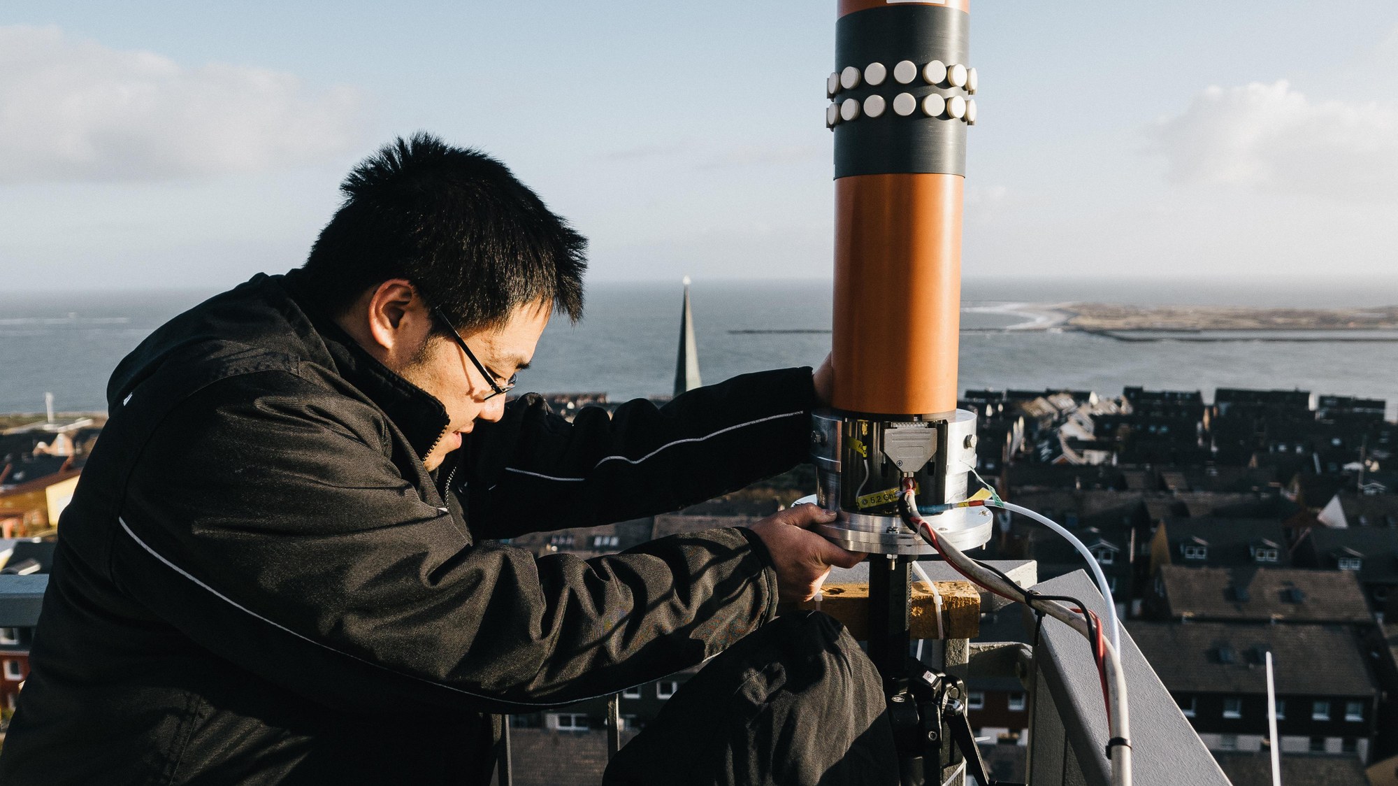 Um die Breitbandkommunikation vom Land zum Schiff zu untersuchen, installierten DLR-Wissenschaftler ihre Antennen auf Helgolands Leuchtturm. Als Sender fuhr der Seenotrettungskreuzer "Hermann Marwede" auf der Nordsee.