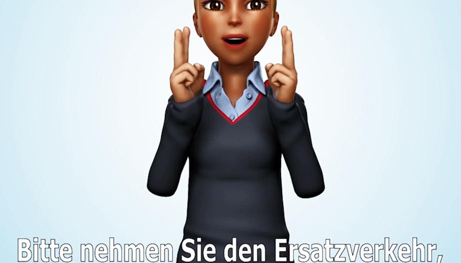 Ein Avatar übermittelt die Informationen in Gebärdensprache.