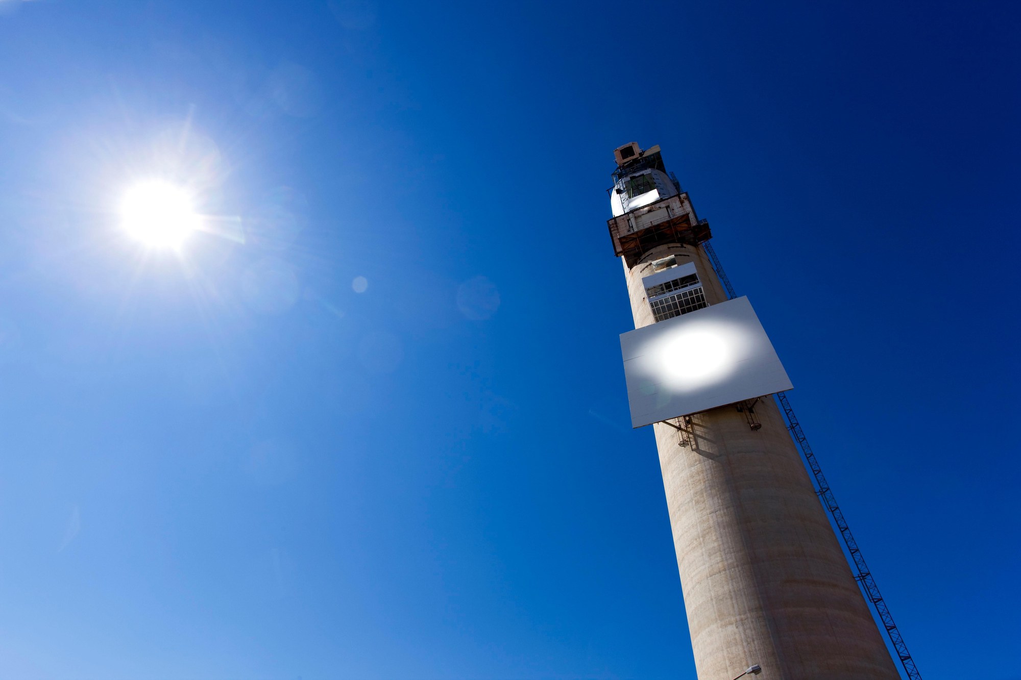 Der Turm des Solarturmkraftwerks CESA-1 hat eine Höhe von 83 Metern.