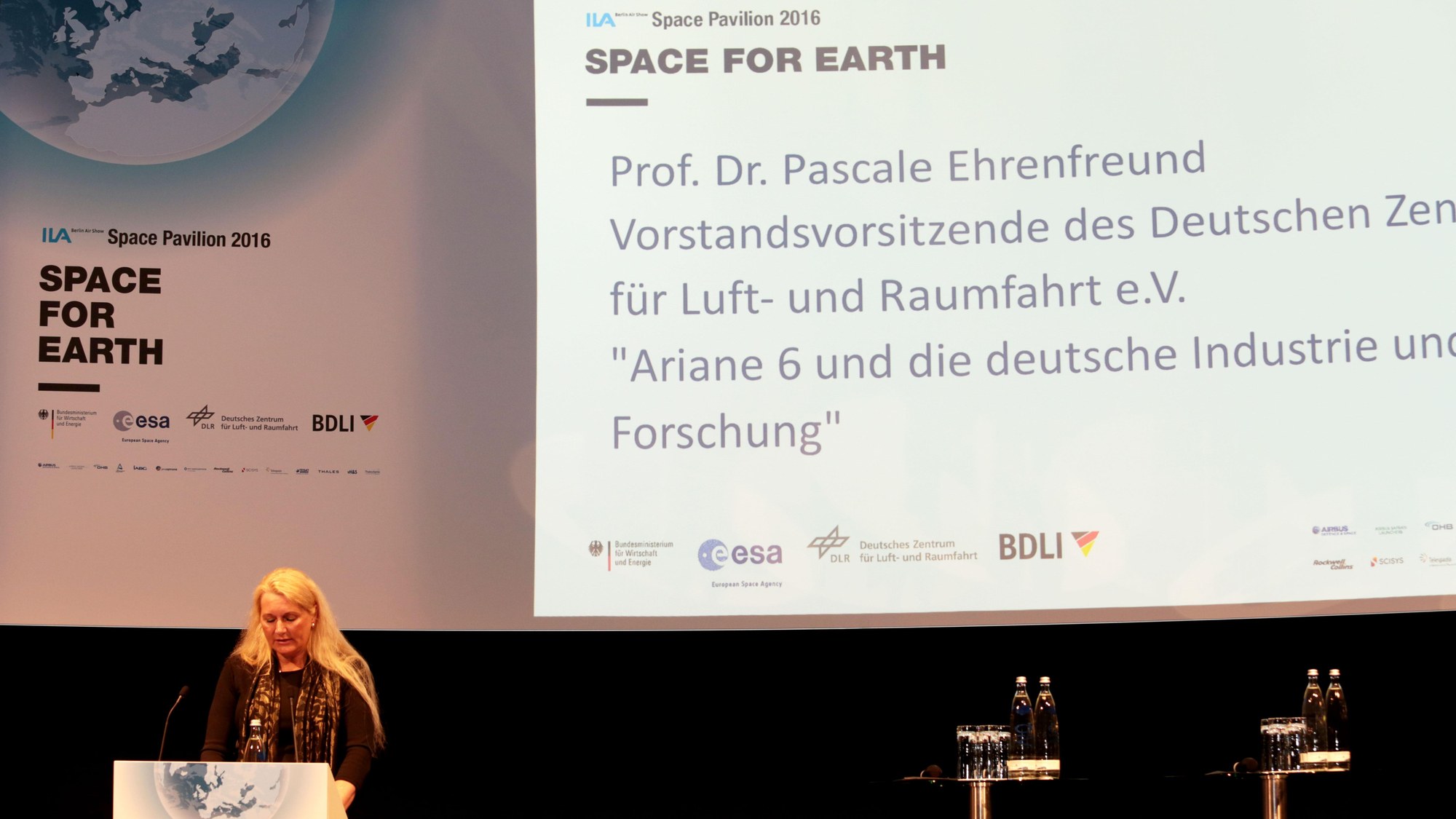 Die DLR-Vorstandsvorsitzende am Eröffnungstag der ILA 2016 bei der Diskussionsrunde zum Thema Ariane 6