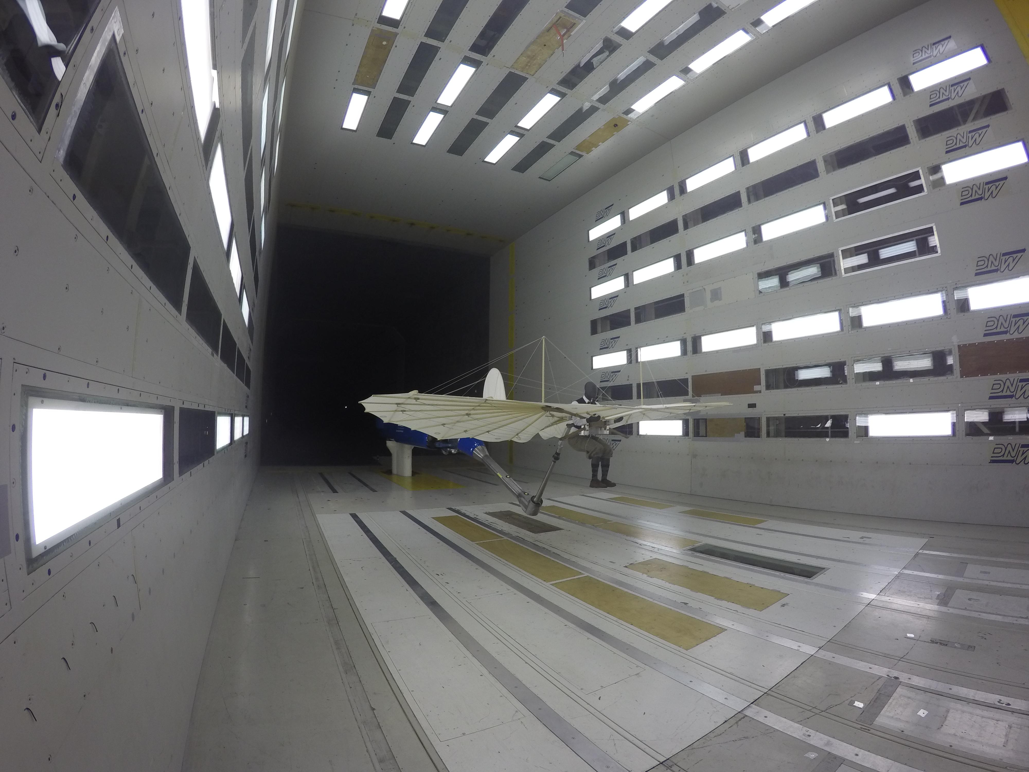 Der nachgebaute Lilienthal-Gleiter im Windkanal.