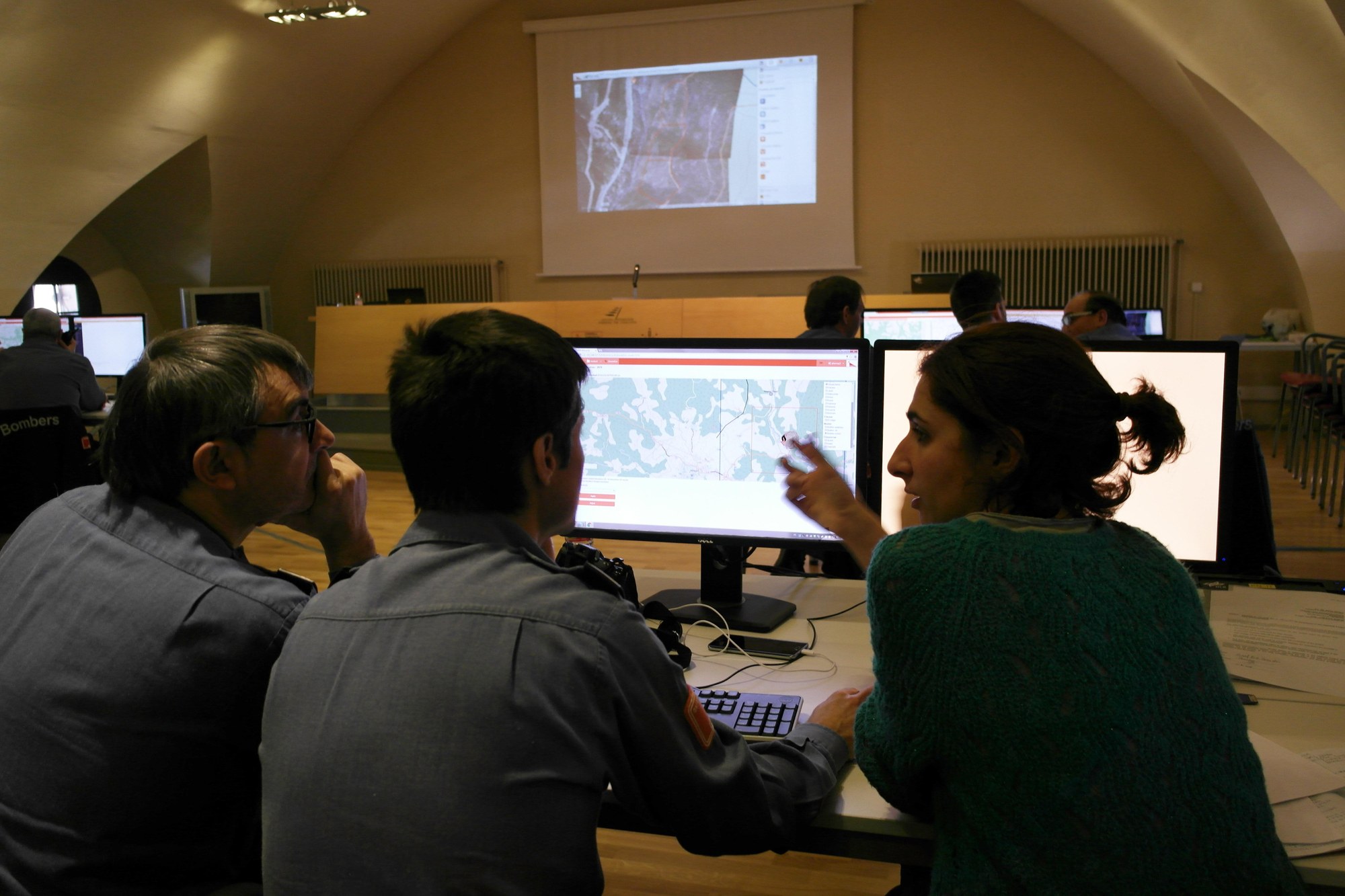 Bei der Pilotdemonstration in Spanien konnten die DLR-Wissenschaftler zusammen mit den lokalen Einsatzkräften PHAROS testen. Im vor Ort eingerichteten Kontrollraum empfingen die Wissenschaftler die Messergebnisse und konnten diese gleich in das Programm einfließen lassen.