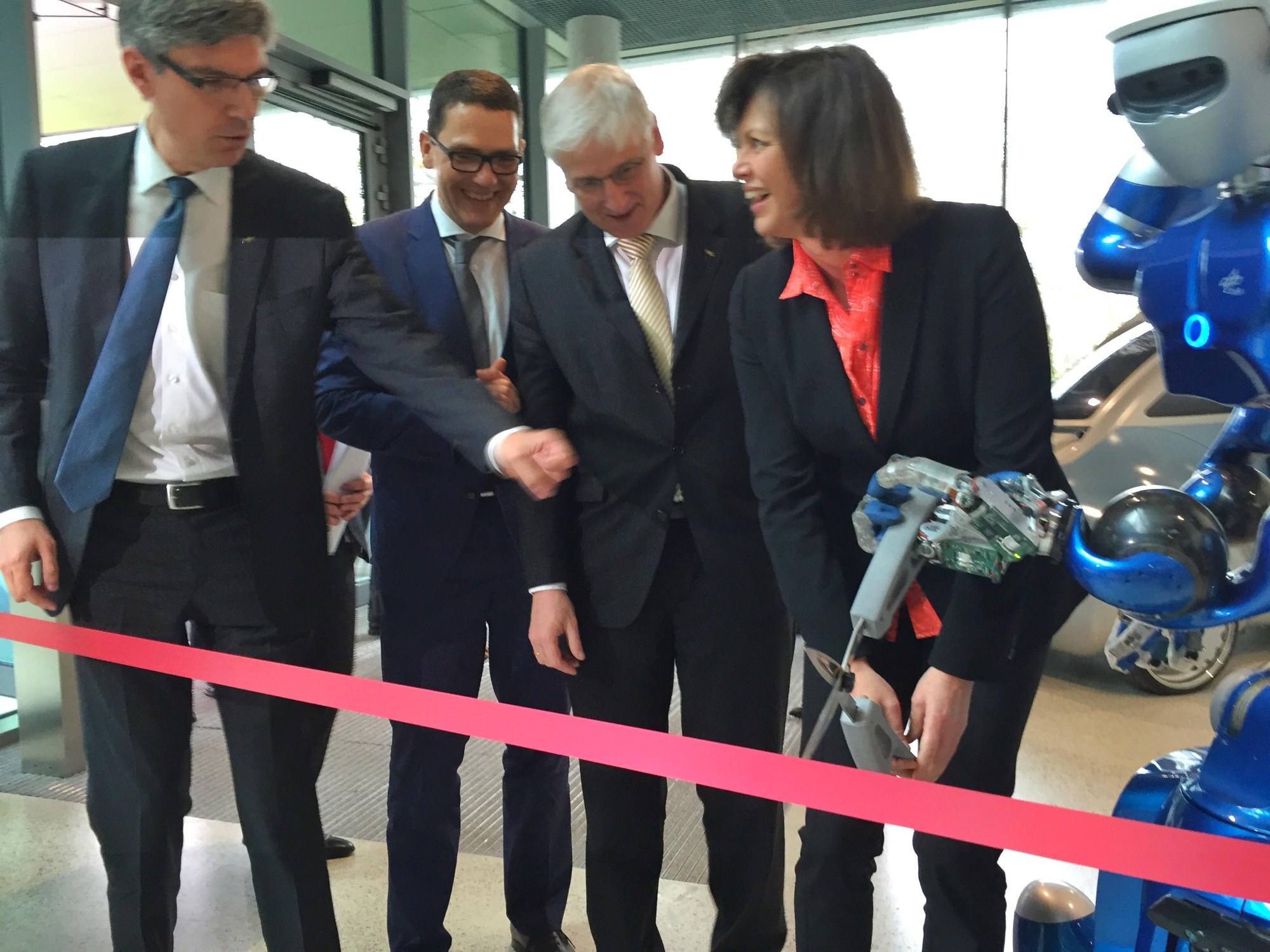 Ilse Aigner, Bayerische Staatsministerin für Wirtschaft und Medien, Energie und Technologie und Stellvertretende Ministerpräsidentin eröffnet am 15.04.2016 das neue Gebäude des Robotik und Mechatronik Zentrums in Oberpfaffenhofen.