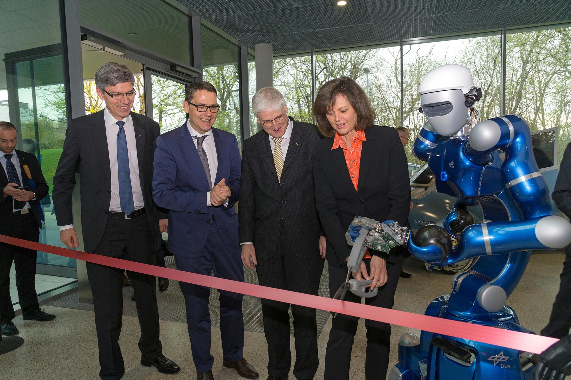 Ilse Aigner, Bayerische Staatsministerin für Wirtschaft und Medien, Energie und Technologie und Stellvertretende Ministerpräsidentin eröffnet am 15.04.2016 das neue Gebäude des Robotik und Mechatronik Zentrums in Oberpfaffenhofen.