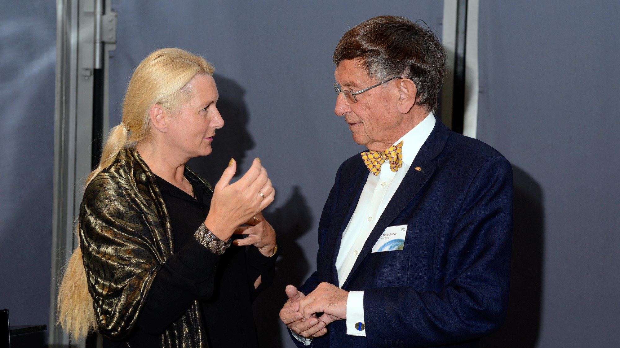Prof. Pascale Ehrenfreund, Vorstandsvorsitzende des DLR und Prof. Heinz Riesenhuber, Mitglied des Bundestages und Forschungsminister a. D.