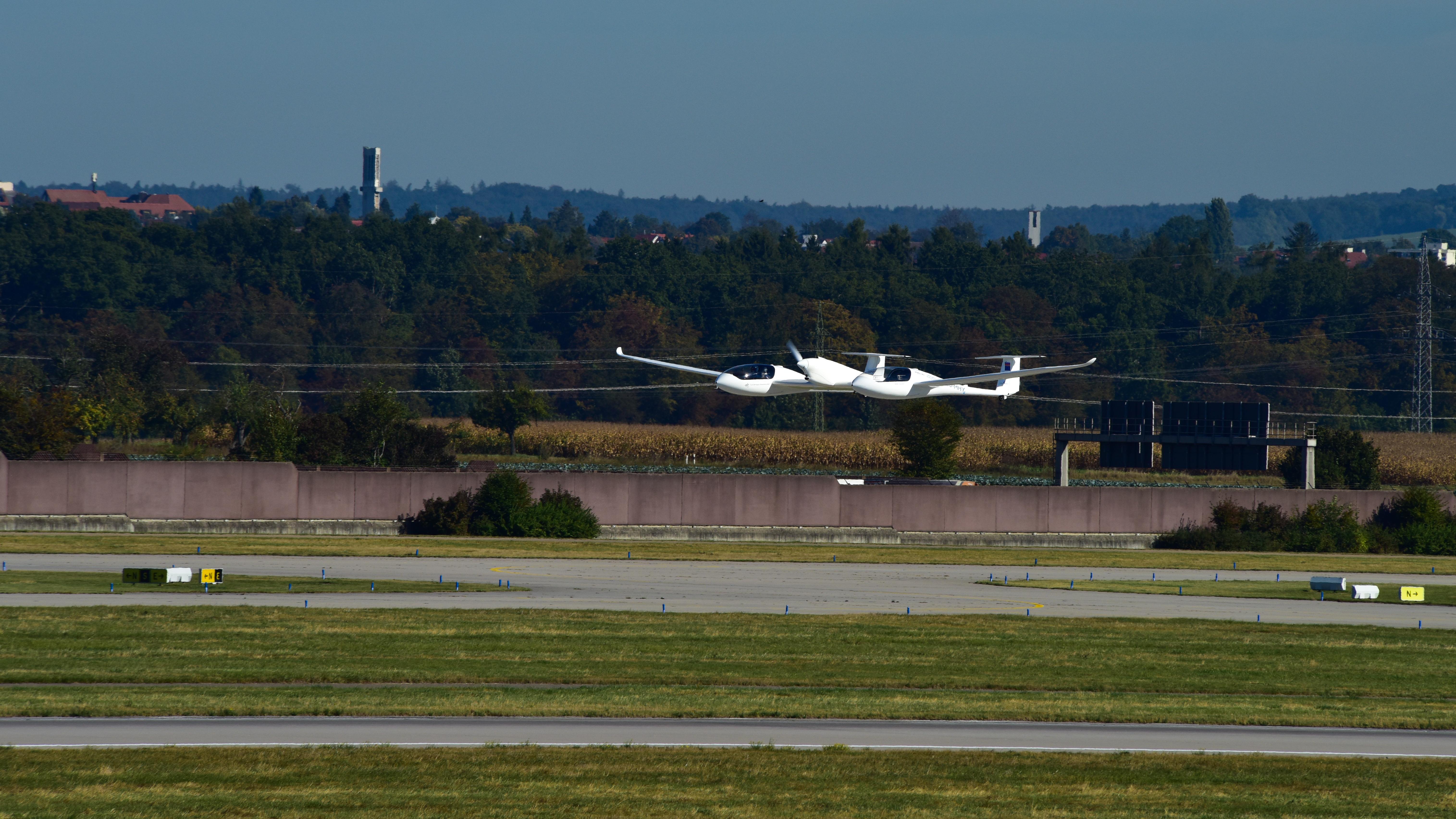 Gegen 11:10 hob das viersitzige Flugzeug Hy4 am Stuttgarter Flughafen ab.