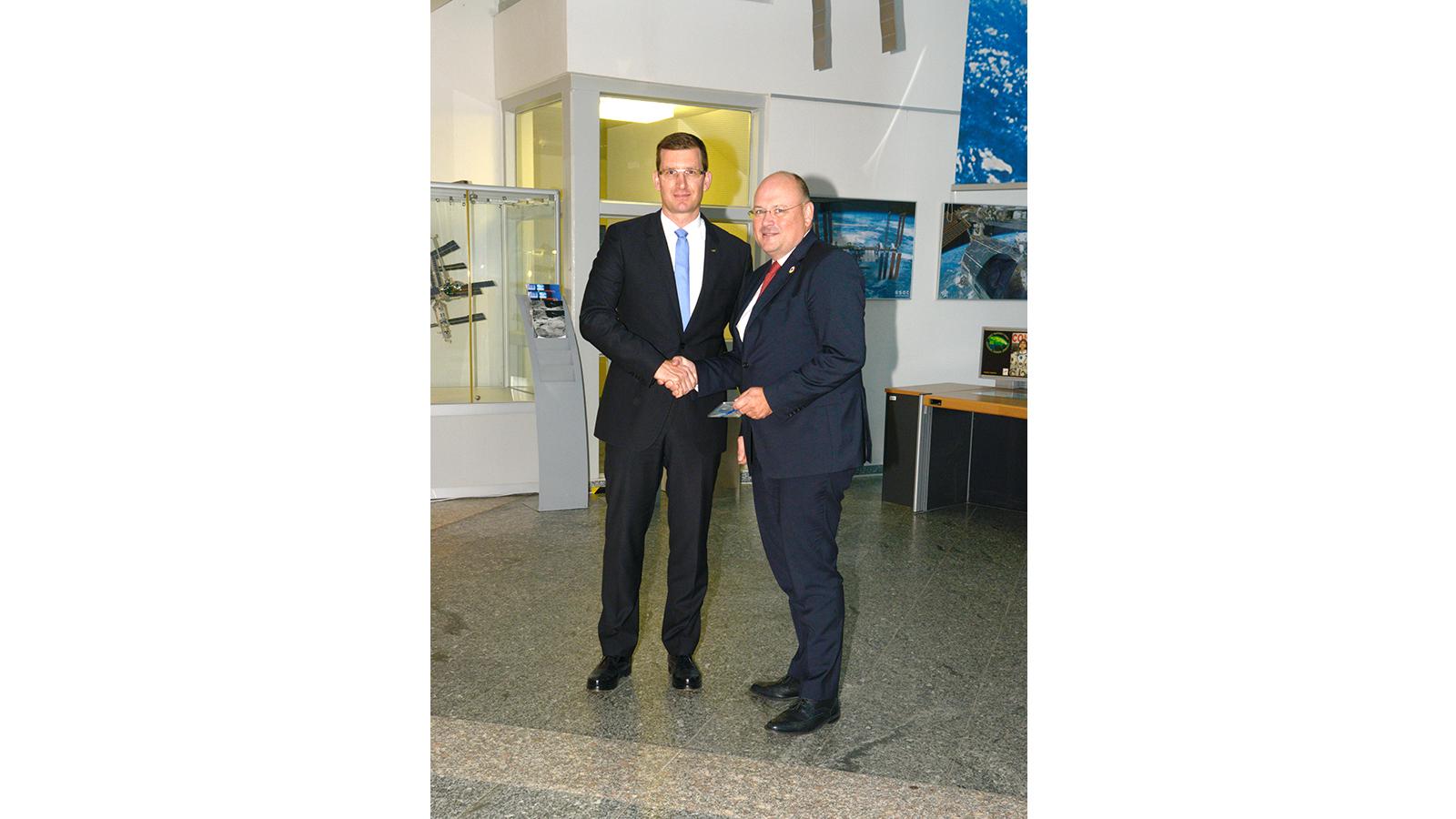 Dr. Göge, Programmkoordinator für die Sicherheitsforschung am DLR, begleitete Arne Schönbohm bei seiner Tour über den Standort. Bei intensiven Gesprächen konnte über eine mögliche Zusammenarbeit geredet werden.