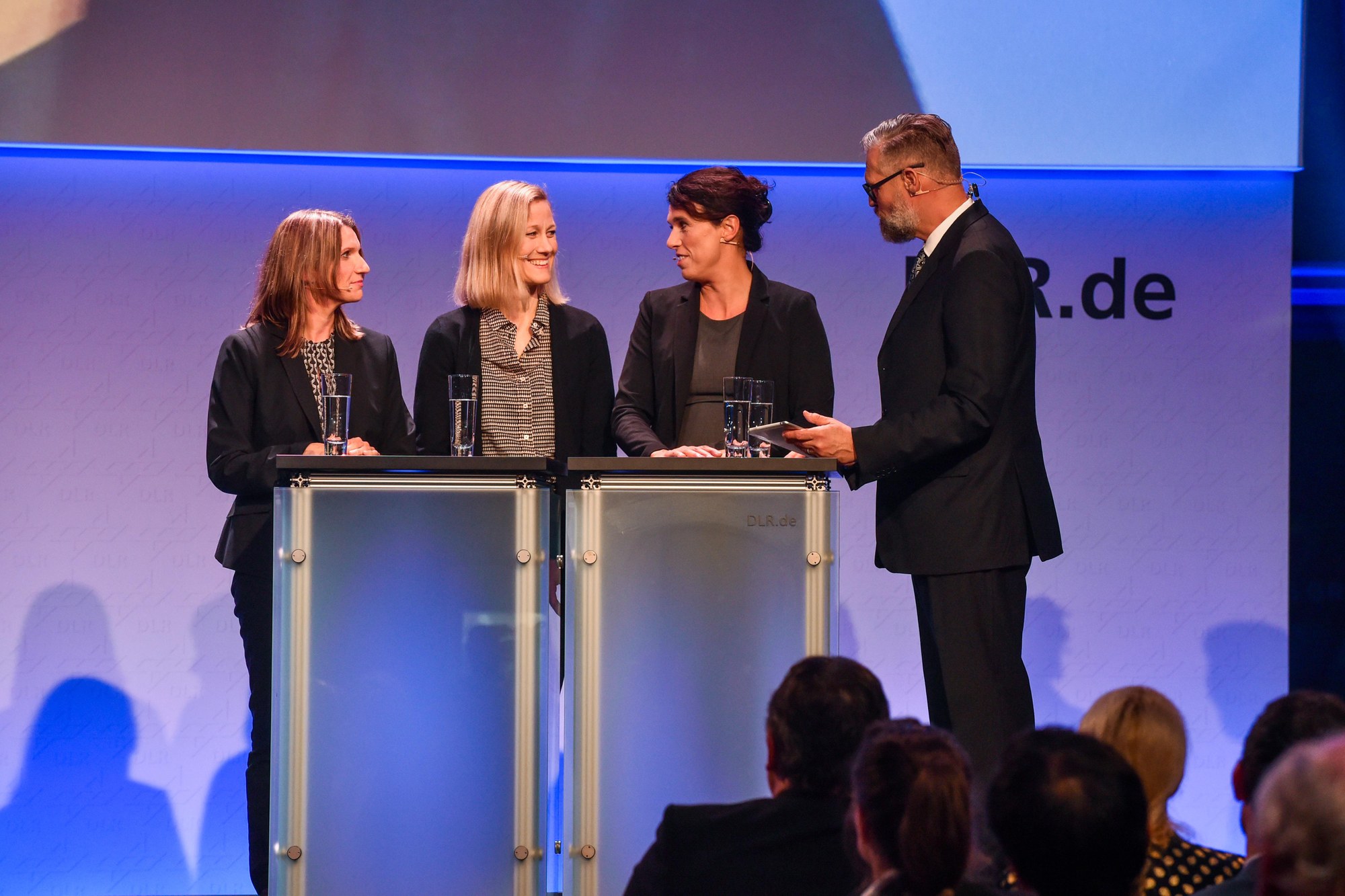 In der ersten Gesprächsrunde des Abends sprachen Christine Klein, Dr. Kathrin Specht und Godela Rossner vom DLR-Raumfahrtmanagement in Bonn über ihre Vorbereitungen zur bevorstehenden ESA-Ministerratskonferenz.
