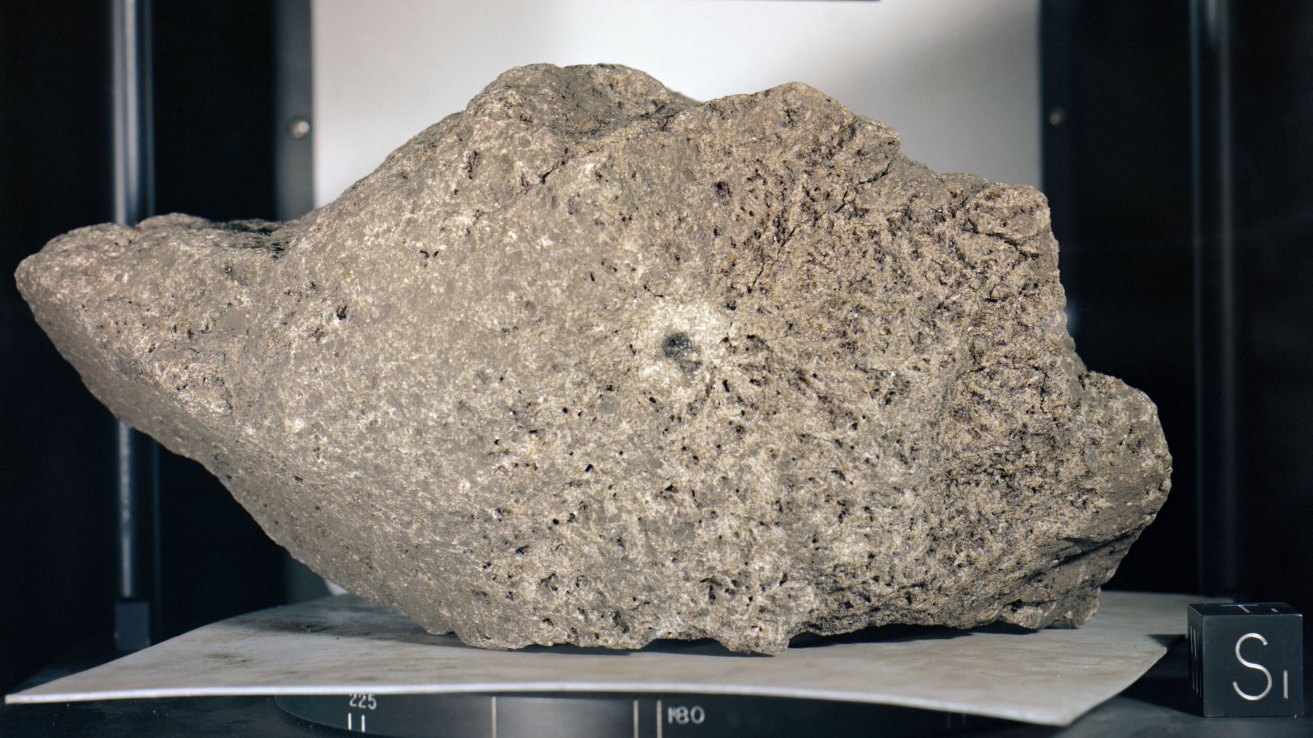 "The Great Scott", ein neuneinhalb Kilo schwerer Felsen, benannt nach Astronaut Dave Scott, der ihn zusammen mit der Besatzung der Apollo 15 Mission im August 1971 zur Erde gebracht hat. Der Stein ist vulkanischen Ursprungs und etwa 3,3 Milliarden Jahre alt. Eingesammelt wurde er am Rande des Mare Imbrium, einem Plateau in der Nähe der Hadley-Rille.
