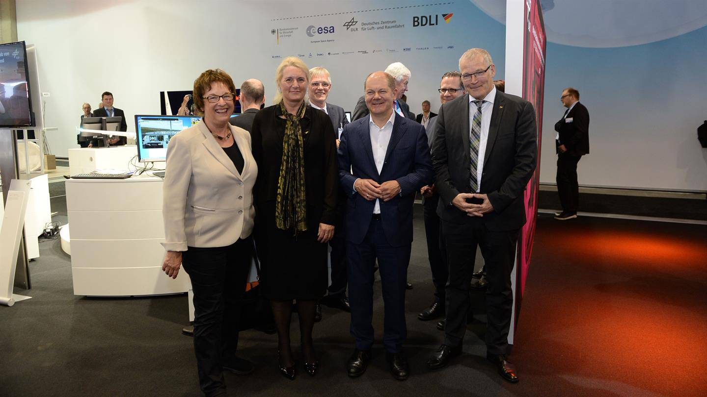Am zweiten Messetag der ILA Berlin Air Show schaute Olaf Scholz, Erster Bürgermeister der Freien und Hansestadt Hamburg, am DLR Stand vorbei und traf dort Brigitte Zypries, die parlamentarische Staatssekretärin und Koordinatorin für die Deutsche Luft- und Raumfahrt.