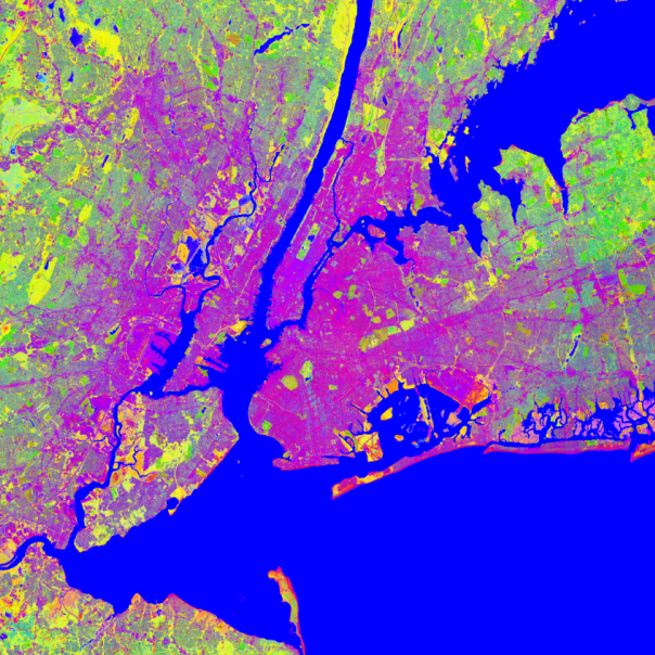 Falschfarbenkomposit des TimeScan-Landsat-2015 für die Region New York