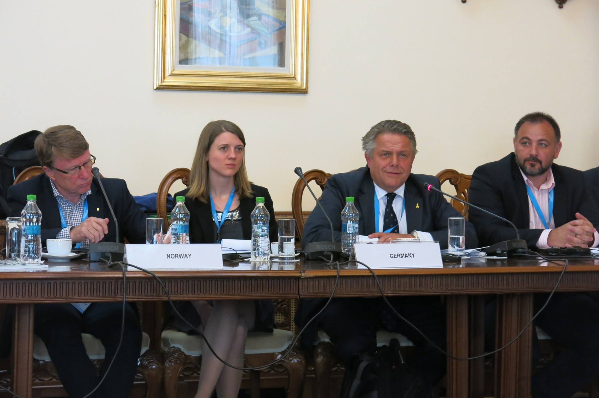 Der deutsche Bundestagsabgeordnete und Vorsitzende der Parlamentsgruppe Luft- und Raumfahrt, Klaus-Peter Willsch MdB, während der Diskussion über Raumfahrt und Sicherheit.