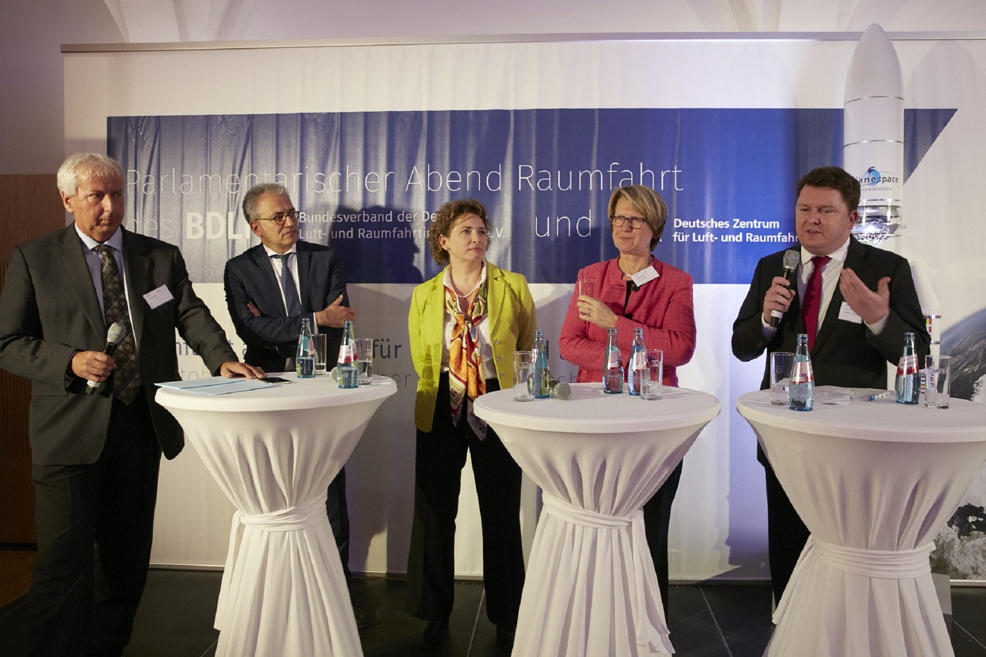 V.l.n.r.: Uli Bobinger in Diskussion mit Staatsminister für Wirtschaft, Energie, Verkehr und Landesentwicklung, Tarek Al-Wazir, MdL, Staatsministerin a.D. Nicola Beer, MdL, Staatsministerin a.D. Karin Wolff, MdL, und Marius Weiß, MdL
