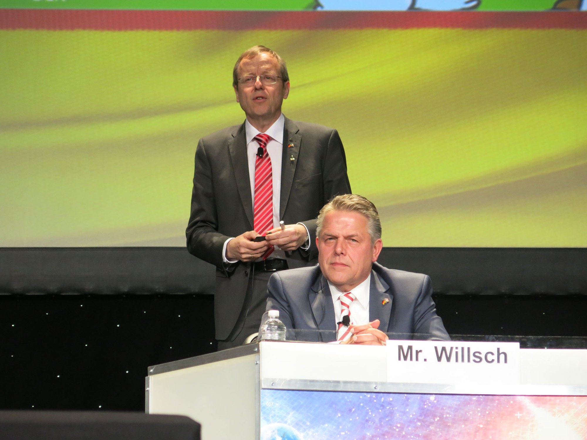 DLR Vorstandsvorsitzender Prof. Dr.-Ing. Johann-Dietrich Wörner mit Klaus-Peter Willsch MdB während der Diskussion unter dem Motto "Make it with Germany".