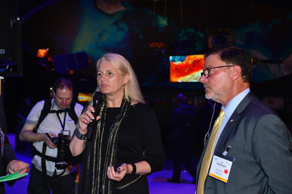 Prof. Dr. Pascale Ehrenfreund, Vorstandsvorsitzende des DLR, sprach mit Elliot Pulham, CEO der amerikanischen Space Foundation über den Nutzen der Raumfahrt für die Erde.