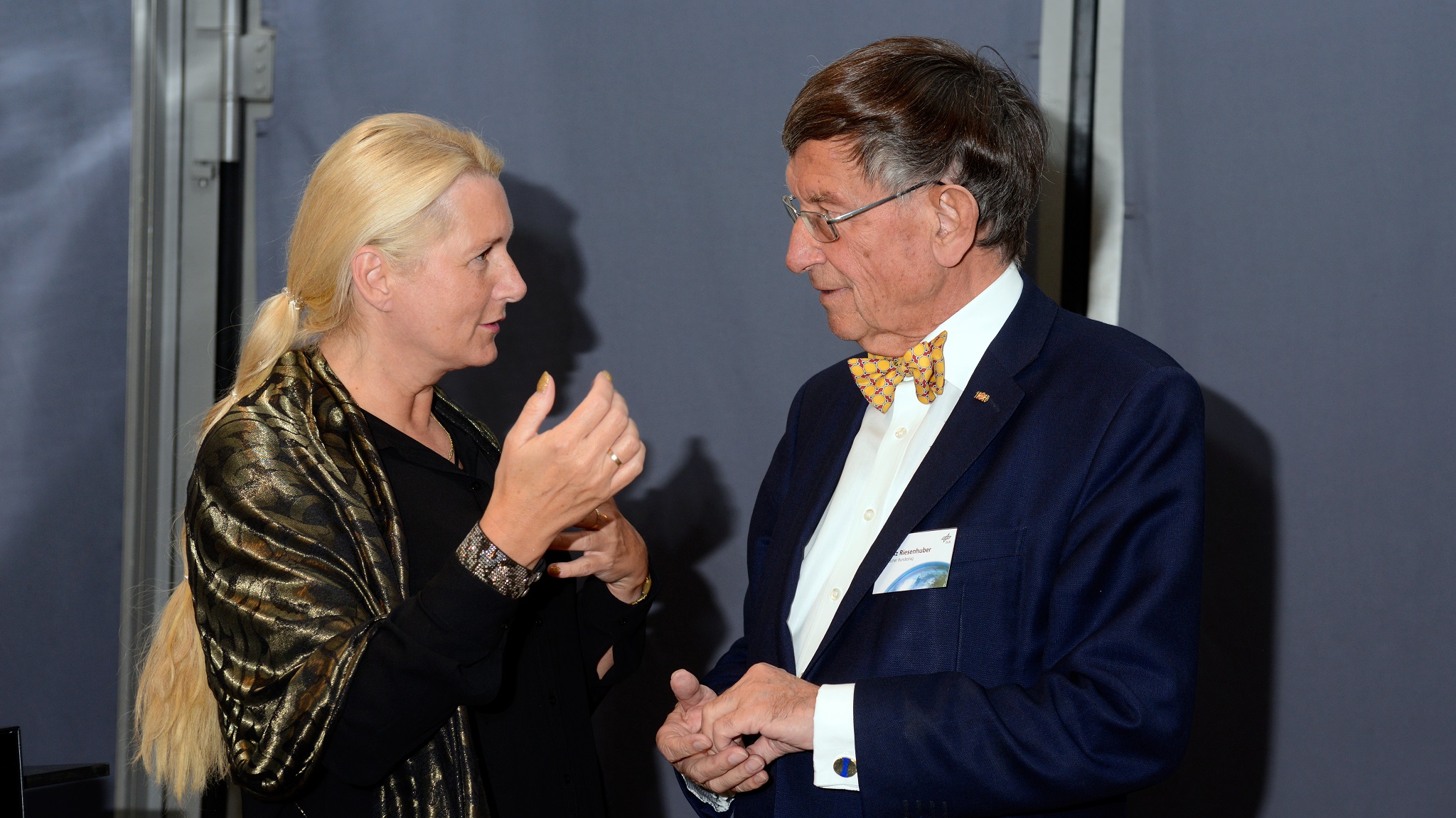 Prof. Dr. Pascale Ehrenfreund, Vorstandsvorsitzende des DLR, im Gespräch mit Prof. Dr. Heinz Riesenhuber MdB, Bundesforschungsminister a.D.