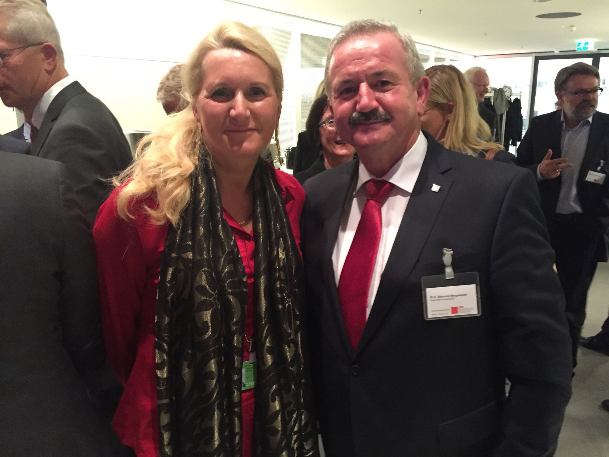 Prof. Dr. Reimund Neugebauer, Präsident der Fraunhofer-Gesellschaft, mit Prof. Dr. Pascale Ehrenfreund während des Wirtschaftsempfangs der SPD 2015.