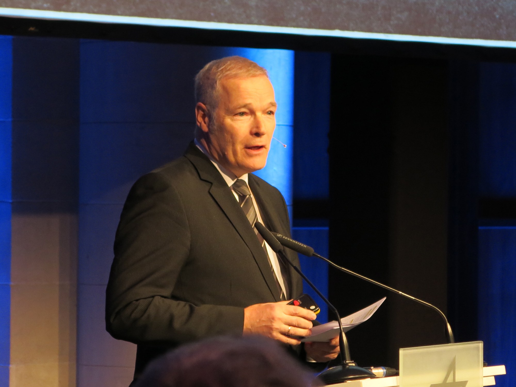 DLR-Luftfahrtvorstand Prof. Rolf Henke bei seinem Vortrag über die DLR-Luftfahrtforschung.