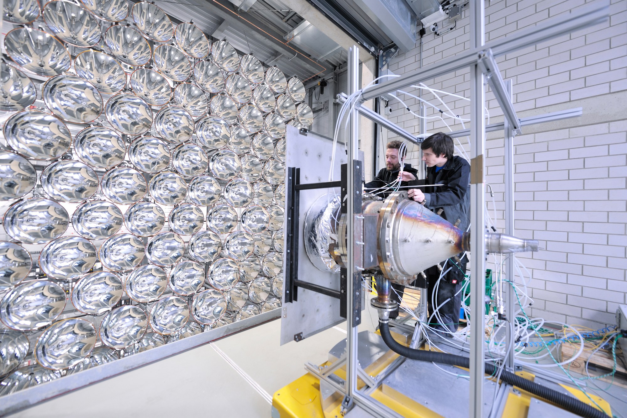 In insgesamt drei Versuchskammern können bei Bedarf parallel Versuche durchgeführt werden. Durch den Reaktor fließt später Wasser, woraus durch die Energie des gebündelten Lichts Wasserstoff gewonnen wird.