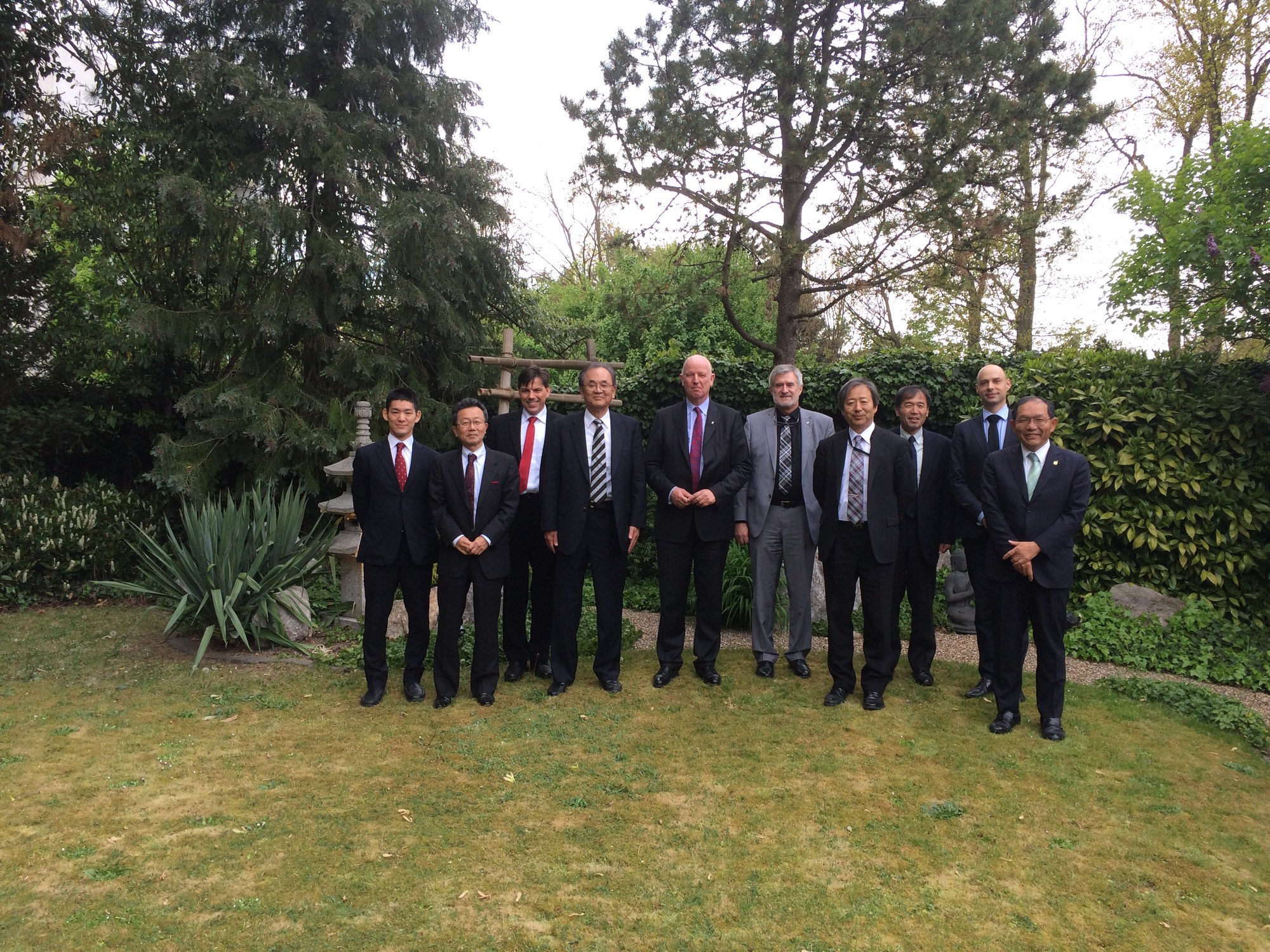 Nach Gesprächen zur intensiveren Unterstützung der Zusammenarbeit zwischen deutschen und japanischen Raumfahrtunternehmen fanden die Gäste im Japanischen Garten der Bonner Rheinaue ein kleines Stück Heimat vor.