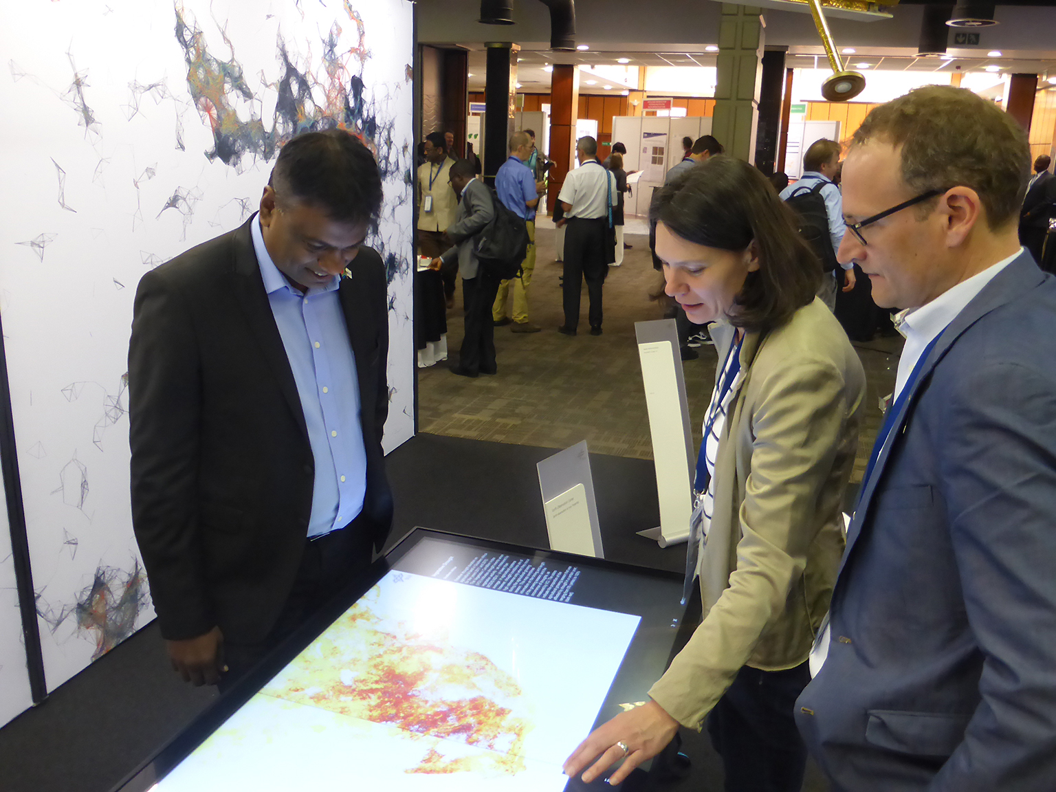 Dr. Valanathan Munsami (links), Chief Executive Officer der südafrikanischen Raumfahrtagentur SANSA, besuchte den DLR-Stand auf dem "Internationalen Symposium der Fernerkundung unserer Umwelt 2017“ (ISRSE) in Tshwane. Im Rahmen des Besuchs wurde auch die Erneuerung der Kooperationsvereinbarung zwischen DLR und SANSA besprochen.
