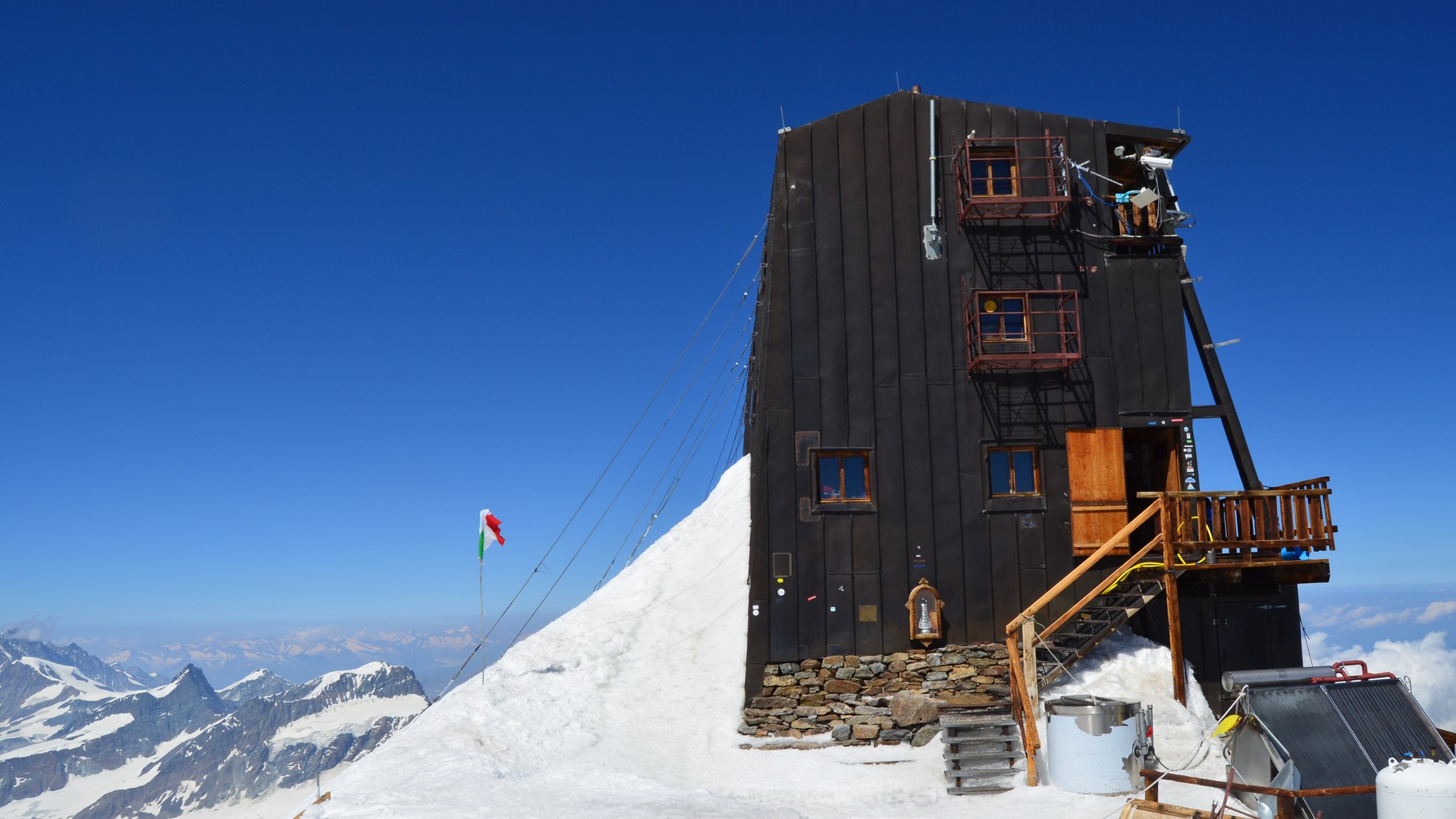 In der Schutzhütte Regina Margherita, Europas höchstgelegenem Gebäude in den Walliser Alpen, untersuchen die Wissenschaftler des Deutschen Zentrums für Luft- und Raumfahrt (DLR) im August 2017 eine Maßnahme gegen die Symptome der Höhenkrankheit: ein aufblasbares Keil-Kissen, auf dem Bergsteiger mit erhöhtem Oberkörper schlafen.