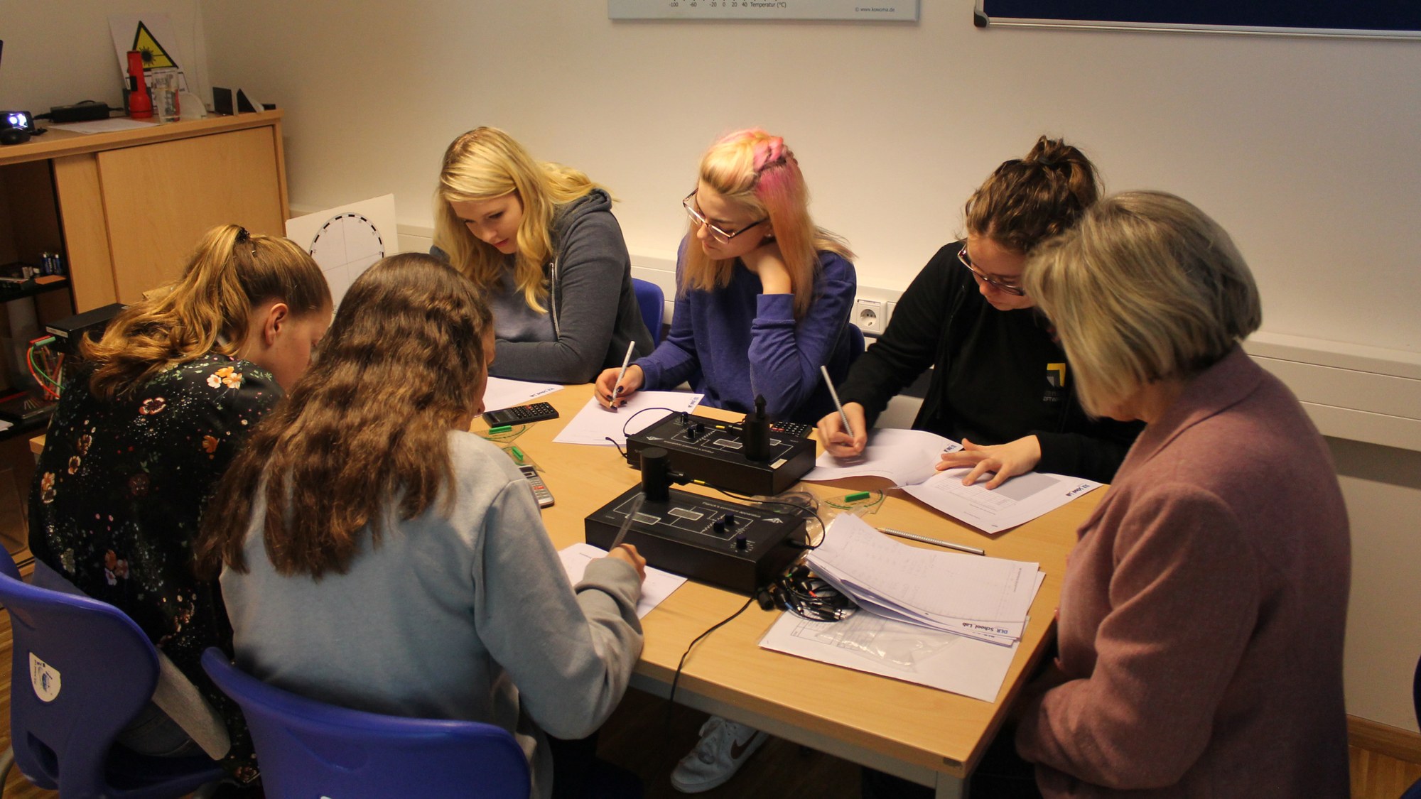Im DLR-Neustrelitz nutzen die Mädchen den Girls‘ Day unter anderem dafür, um sich mit Experimenten zu physikalischen Wirkungsweisen auf das Abitur im kommenden Jahr vorzubereiten.
