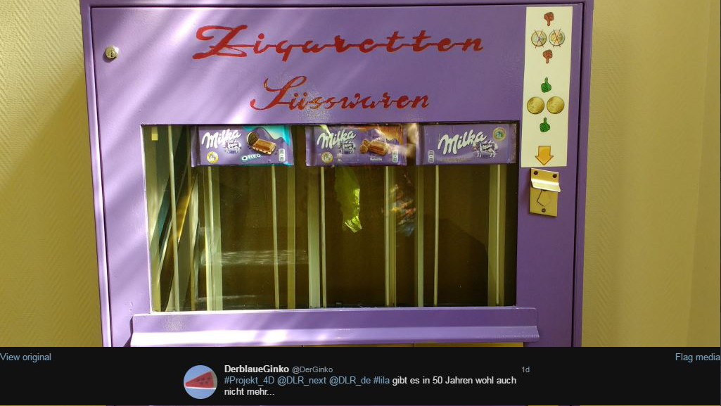 Schon heute gehört der Süßigkeiten-Automat nicht mehr zum Alltagsbild - als Foto aus der Vergangenheit wird er mit der Zeitkapsel des DLR reisen, die erst in 50 Jahren geöffnet wird.