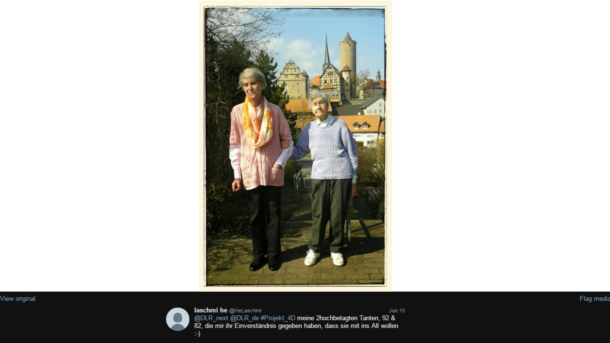 Ein Foto von "zwei hochbetagten Tanten" schickte eine Teilnehmerin an das DLR - die Aufnahme reist in der Zeitkapsel des DLR zur ISS. 2068 wird die zurückgekehrte Kapsel dann geöffnet.