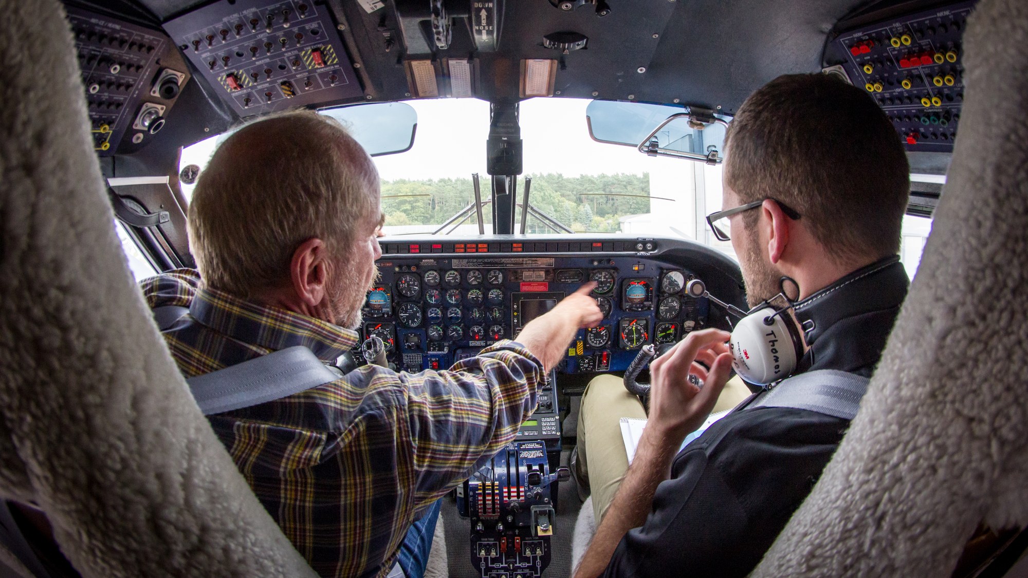 An Bord des "Fliegenden Hörsaals" der TU Braunschweig, der IBUF, erfassen die Studierenden Daten zu Flugeigenschaft und der Flugleistung und werten diese selbst aus.