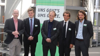 v.l.n.r. MdB Matthias Gastel, Sprecher für Bahnpolitik Bündnis 90/Die Grünen Bundestagsfraktion, Dr. Jürgen Wilder, Vorstandsvorsitzender DB Cargo AG, Prof. Dr. Uwe Höft, Technische Hochschule Brandenburg, Peter Westenberger, Geschäftsführer Netzwerk Europäische Eisenbahnen e. V. und Dr. Stephan Müller, DLR Institut für Verkehrsforschung.