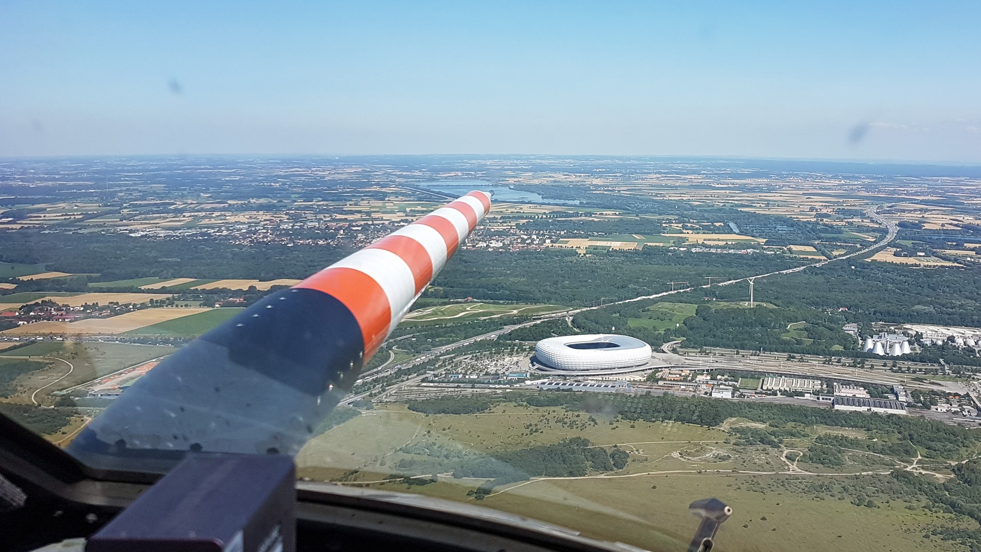 Auf dem Weg zu den geplanten Zielorten finden auch Messungen über dem nahegelegenen München im Tiefflug statt.
