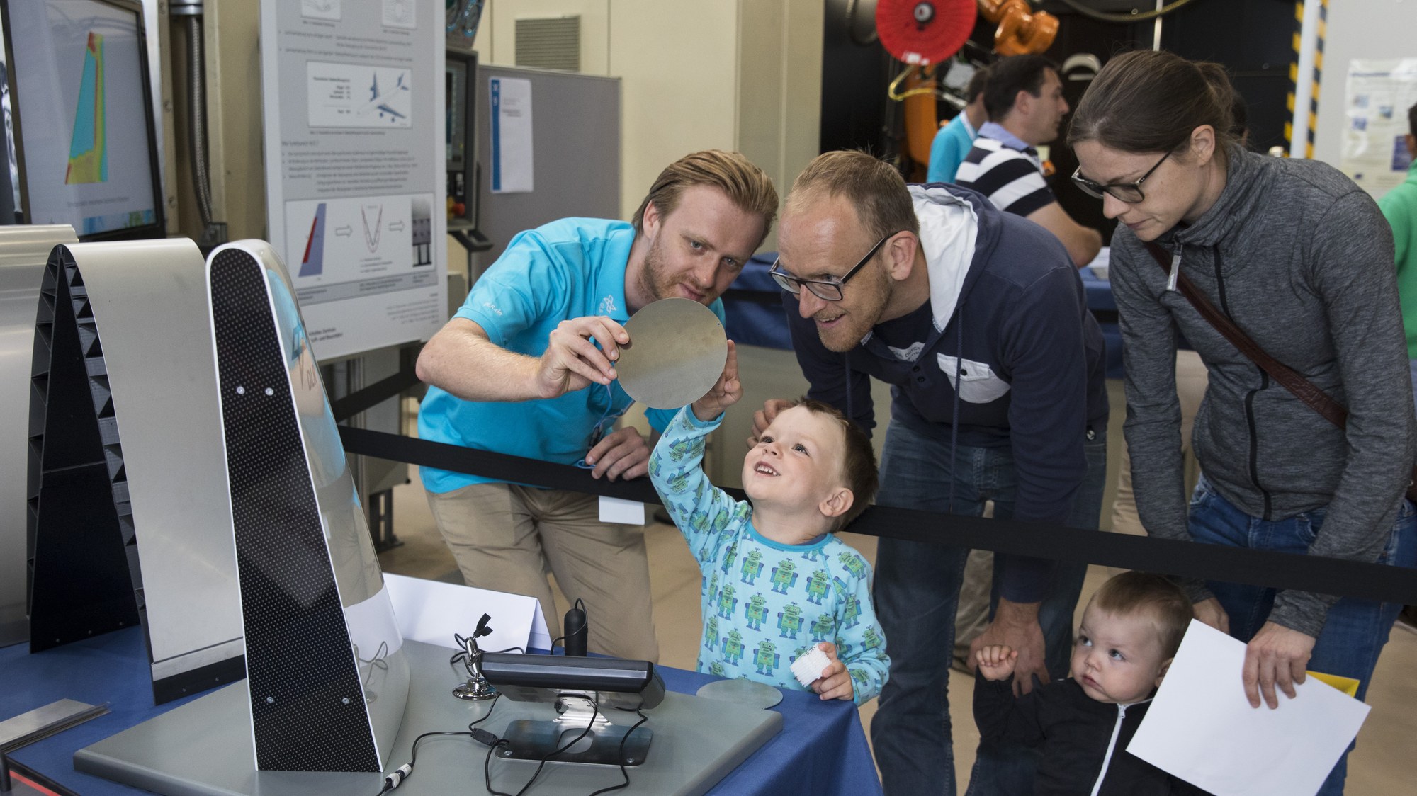 Am Institut für Bauweisen und Strukturtechnologie konnten auch kleine Besucher Hochleistungswerkstoffe unter die Lupe nehmen.