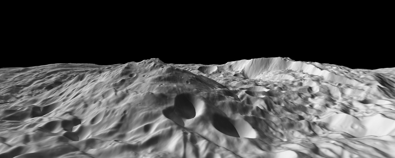 Mit 22 Kilometern fast dreimal so hoch wie der Mount Everest erhebt sich ein noch namenloser Berg inmitten eines 450 Kilometer großen Einschlagbeckens am Südpol des Asteroiden Vesta.