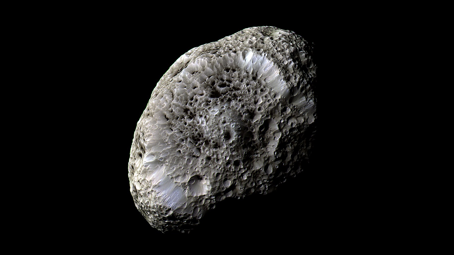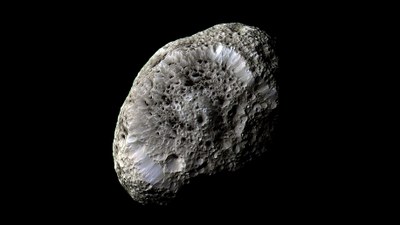 Die ungewöhnliche, an einen Schwamm erinnernde Oberfläche des nur 360 mal 280 mal 250 Kilometer großen Mondes Hyperion verblüffte die Wissenschaftler: Vermutlich wegen eines hohen Anteils an Hohlräumen wird bei den Einschlägen, die zu den Kratern führen, die Eiskruste mehr zusammengedrückt, und nicht, wie auf anderen Körpern mit fester Oberfläche, Material ausgeworfen.