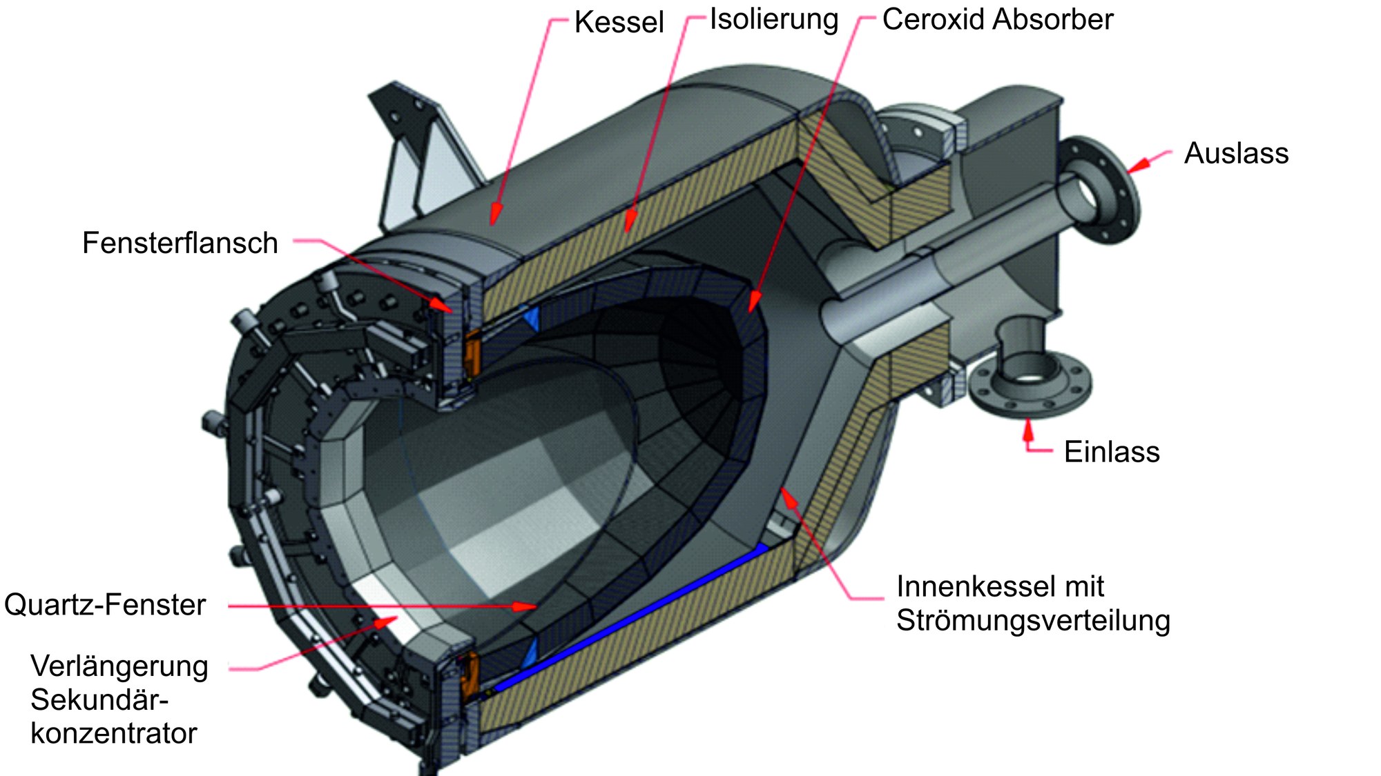 Durch einen Sekundär-Konzentrator wird die Sonnenstrahlung ein zweites Mal gebündelt, was den Wirkungsgrad des Prozesses erhöht.