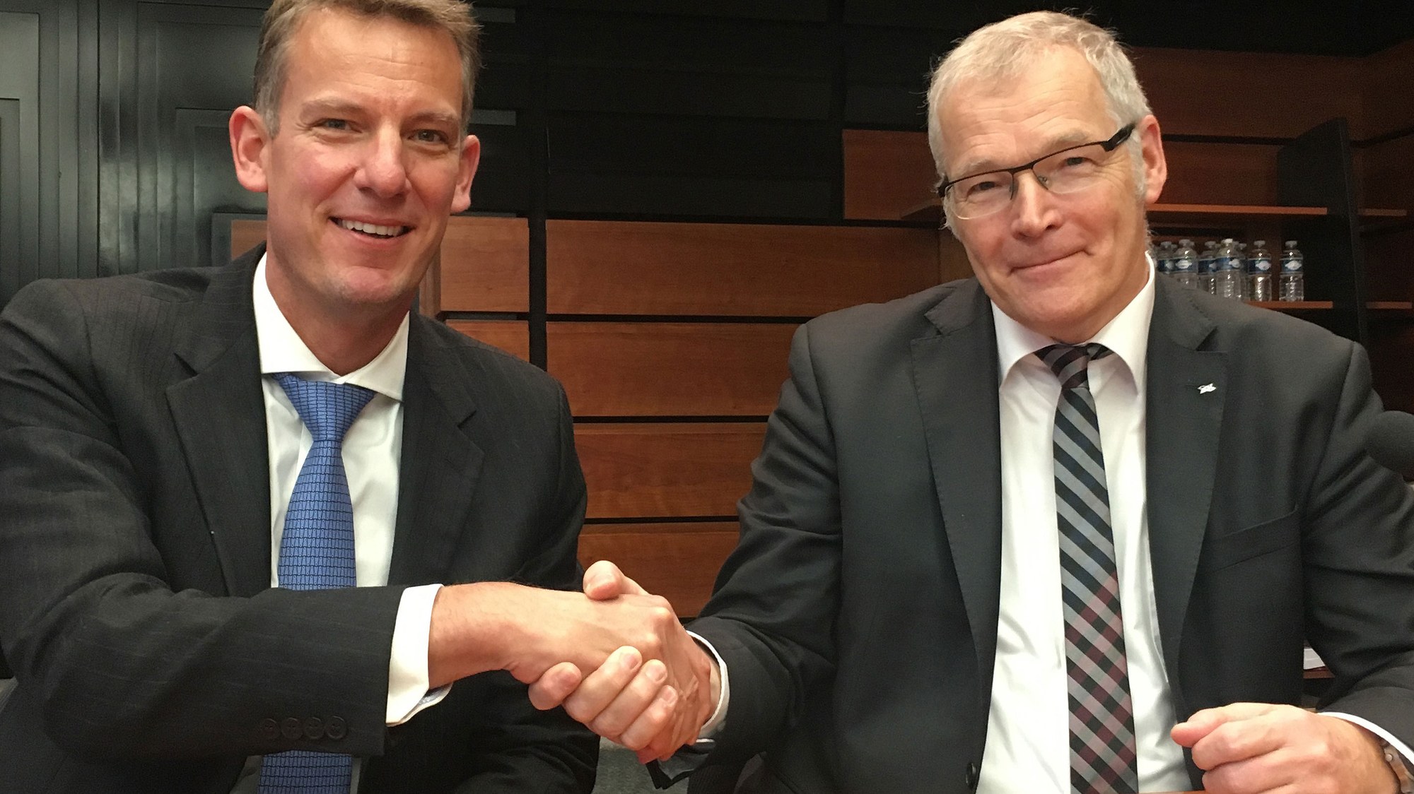 Turnusgemäß übergab DLR-Luftfahrtvorstand Prof. Rolf Henke, als Vertreter der Forschung den ACARE-Vorsitz an Jean-Brice Dumont, Airbus, als Vertreter der Luftfahrtindustrie. Prof. Henke gehört als Vize-Vorsitzender weiter dem ACARE-Führungsteam an.