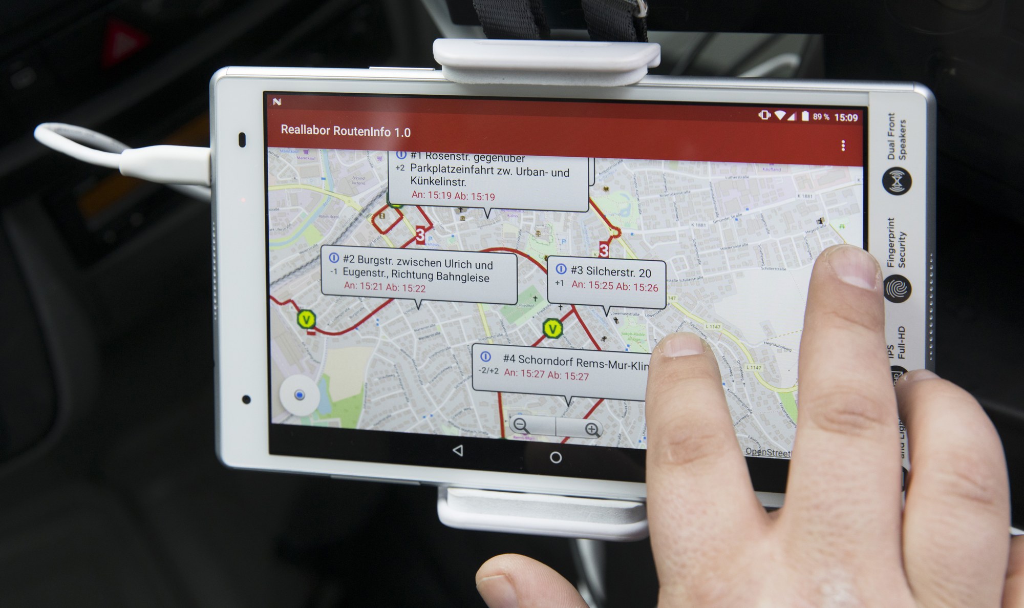 Für die Fahrer der Busse, die im "Reallabor Schorndorf" zum Einsatz kommen, zeigt eine Bedienoberfläche die jeweils aktuelle Route an.