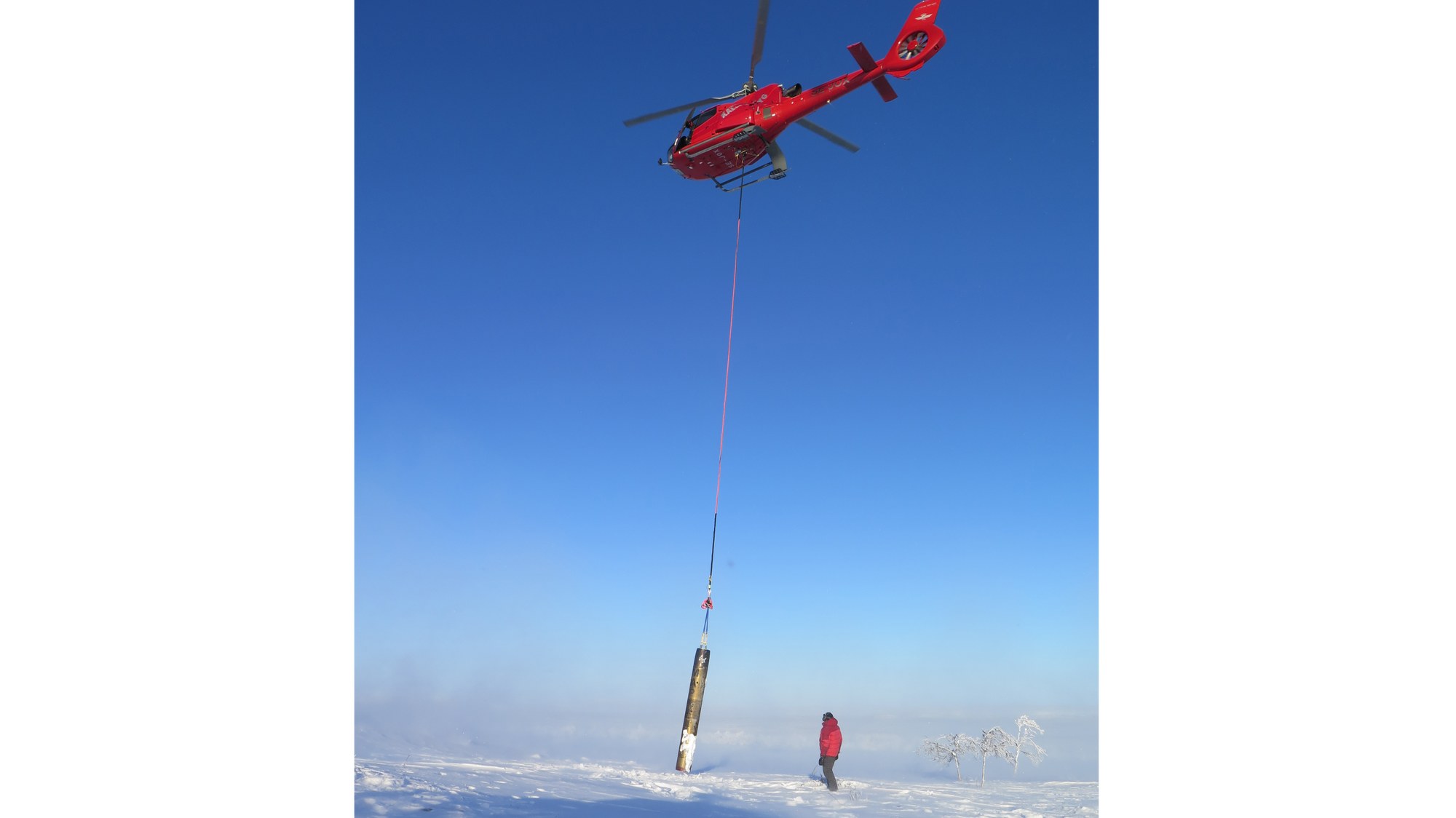 Mit dem Hubschrauber flogen die Ingenieure und Wissenschaftler des DLR zur Höhenforschungsrakete MAPHEUS-7, die nach ihrem Flug wie geplant mit einem Fallschirmsystem abgebremst wurde und geborgen werden konnte.