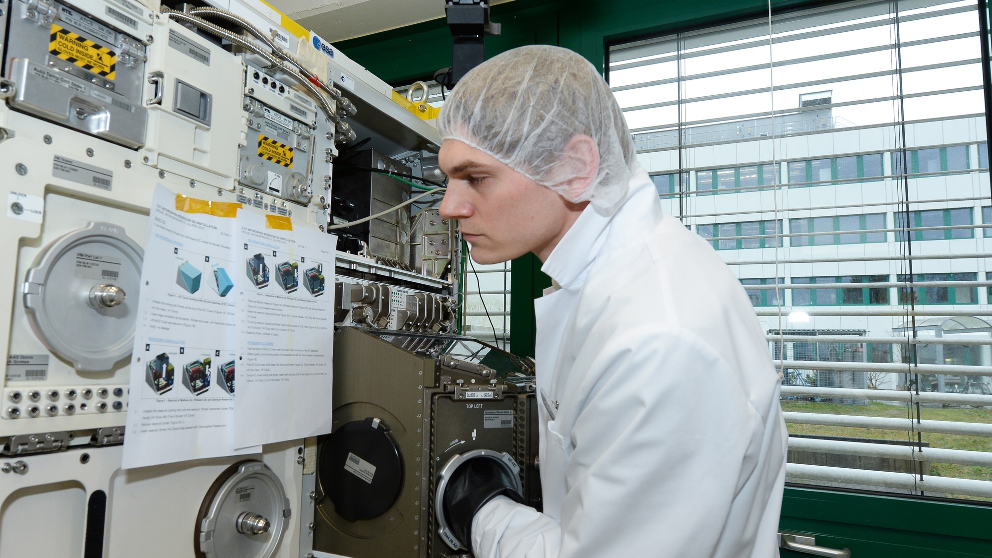 DLR-Mitarbeiter Joachim Strenge simuliert die Experimente, die Astronauten später auf der ISS durchführen, im Biolab des DLR-Instituts für Raumfahrtmedizin.