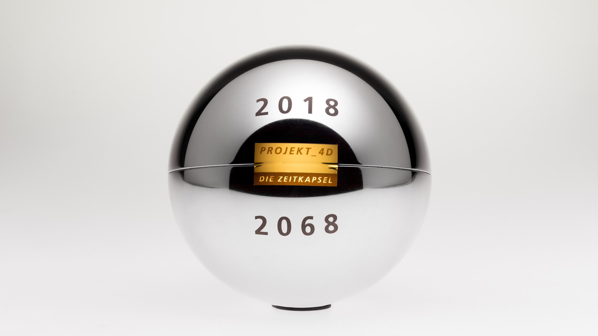 Die kleine Aluminium-Hohlkugel, die von DLR-Auszubildenden gefertigt wurde, wird nach der Rückkehr zur Erde dem Haus der Geschichte in Bonn übergeben. Sie enthält unter anderem einen speziellen Datenträger mit den Botschaften von Kindern und Jugendlichen für die Welt von morgen.