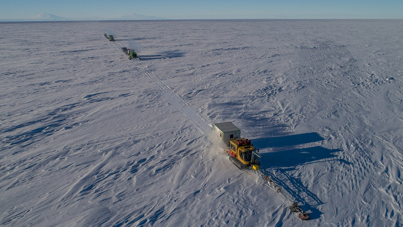 Drei Pistenbullies auf der "Ross Ice Shelf Traverse"