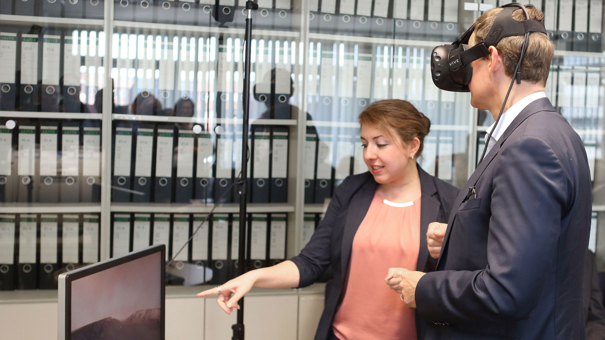 Bei seinem Besuch des DLR-Standorts Berlin-Adlershof am 22. Mai 2018 erlebte der Regierende Bürgermeister des Landes Berlin, Michael Müller, im Institut für Planetenforschung mit Dr. Solmaz Adeli einen Ausflug der besonderen Art