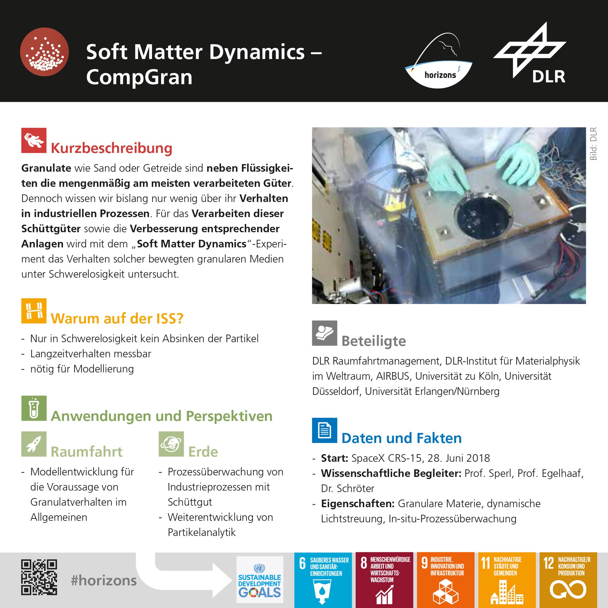 Infokarte zum Experiment CompGran. Quelle: DLR.