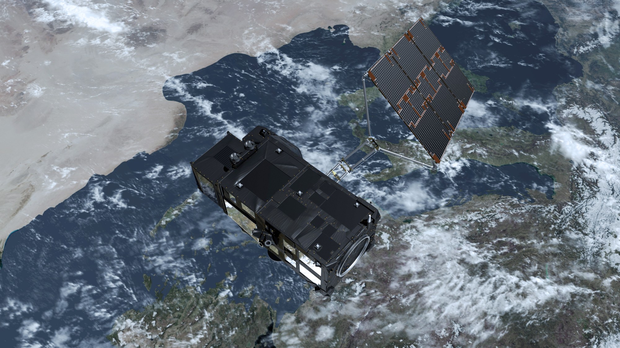 Künstlerische Darstellung Sentinel-3 im All