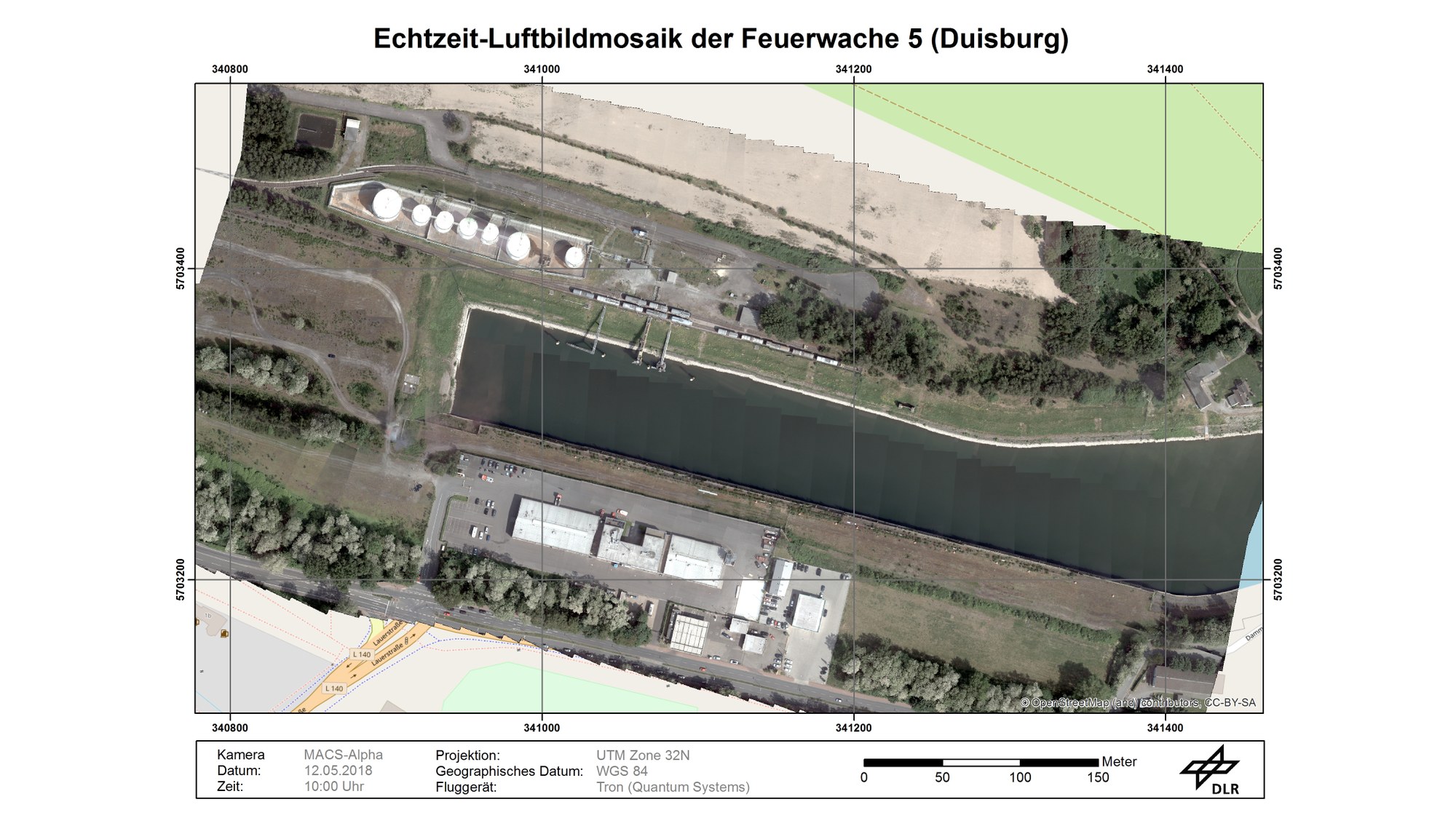 Im DLR-Projekt "Live-Lage" werden Luftbilder von Großschadenslagen in Echtzeit produziert, die den Einsatzkräften helfen, die Situation schnell zu bewerten. Bei dem Erstflug des Systems in Duisburg wurden Luftbilder einer Brandsimulation aufgenommen und eine exemplarische Lagebilderstellung durchgeführt.