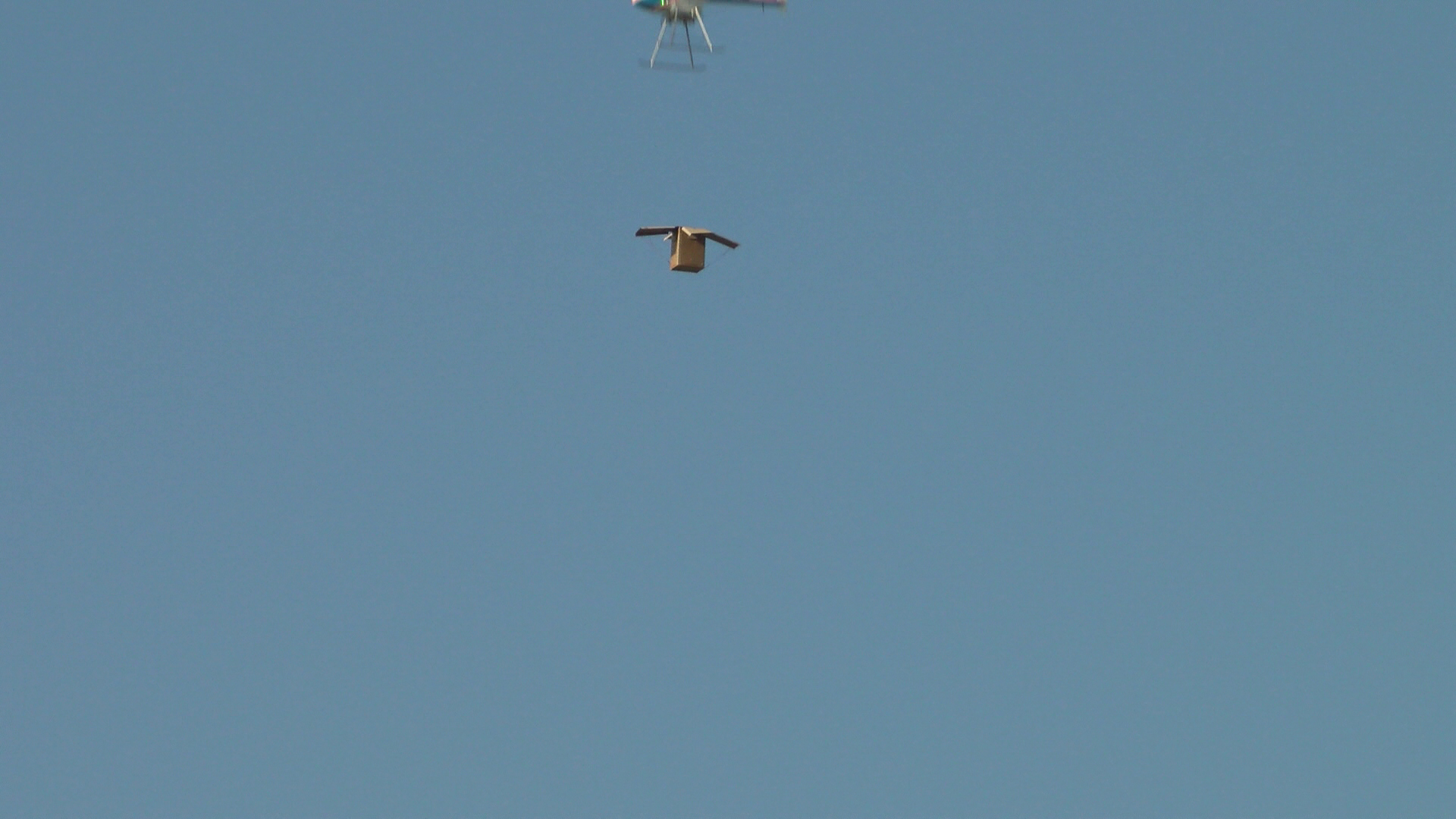 Im Fall öffnen sich die speziell entwickelten Bremsklappen der Boxen automatisch und sorgen so dafür, dass die Hilfsgüter unbeschadet am Zielort landen.