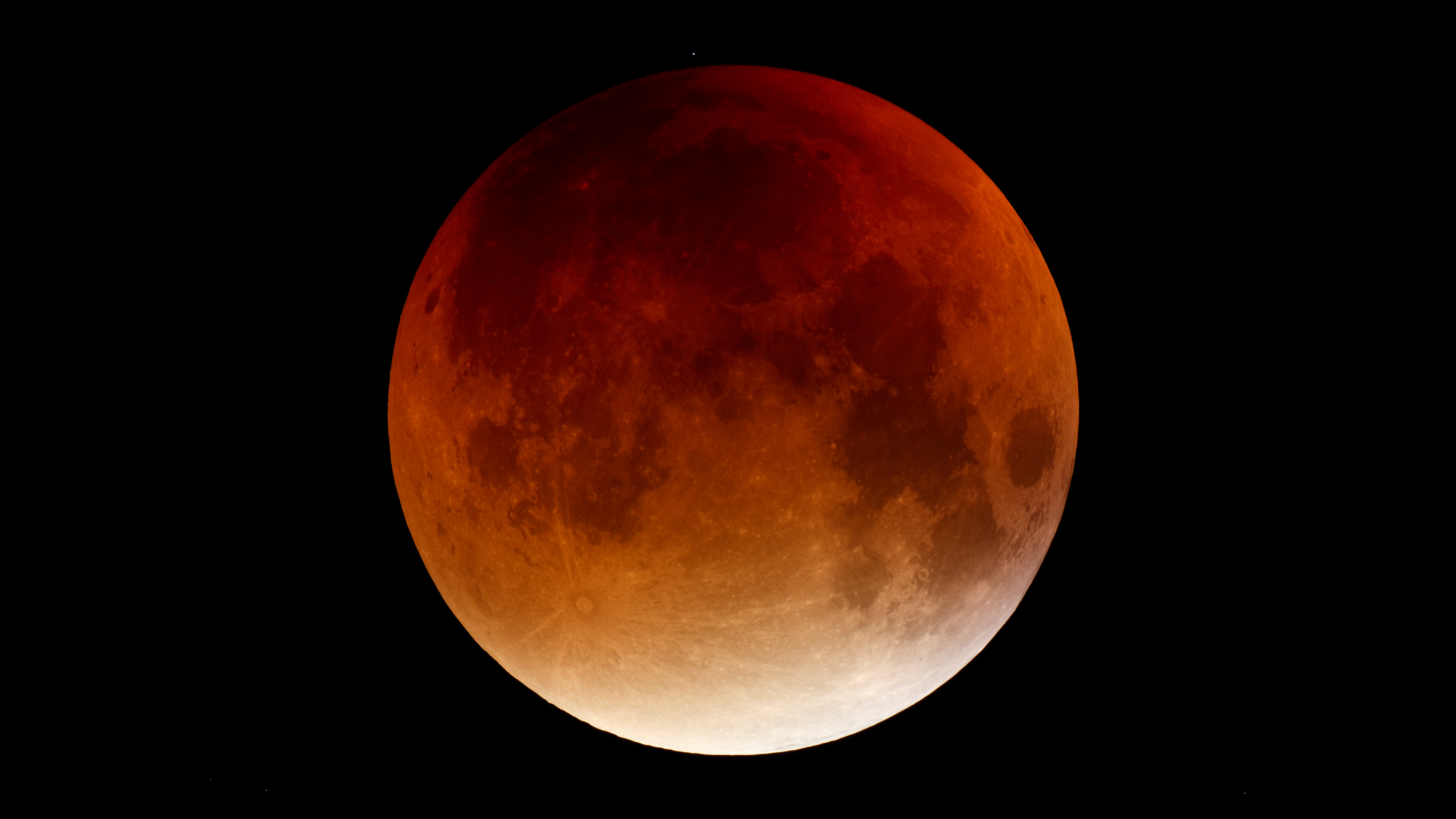 Am Freitag, dem 27. Juli, bewegt sich der Vollmond 103 Minuten lang vollständig durch den Kernschatten der Erde und wird von ihr verfinstert. Dabei verfärbt sich das helle Antlitz des Erdbegleiters kupferrot, weil die an der Erde seitlich vorbeiführenden Sonnenstrahlen von der irdischen Atmosphäre gefiltert werden – kurzwellige blaue Lichtanteile werden absorbiert, aber die langwelligen roten Lichtstrahlen passieren die Erdatmosphäre und werden auf die Mondoberfläche gelenkt. Die totale Mondfinsternis am 27. Juli 2018 ist die längste im 21. Jahrhundert. Das obige Foto entstand bei der totalen Mondfinsternis vom 28. September 2015 auf der Volkssternwarte Rothwesten bei Kassel.