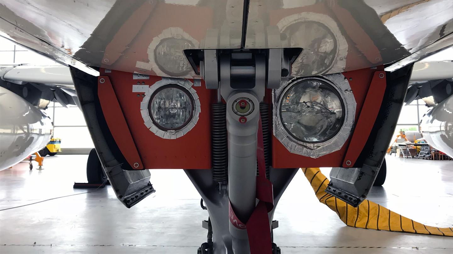 Die Abdeckplatten am oberen Bugfahrwerk gehören zu den insgesamt zehn Lärmminderungsmaßnahmen, die am ATRA realisiert wurden.