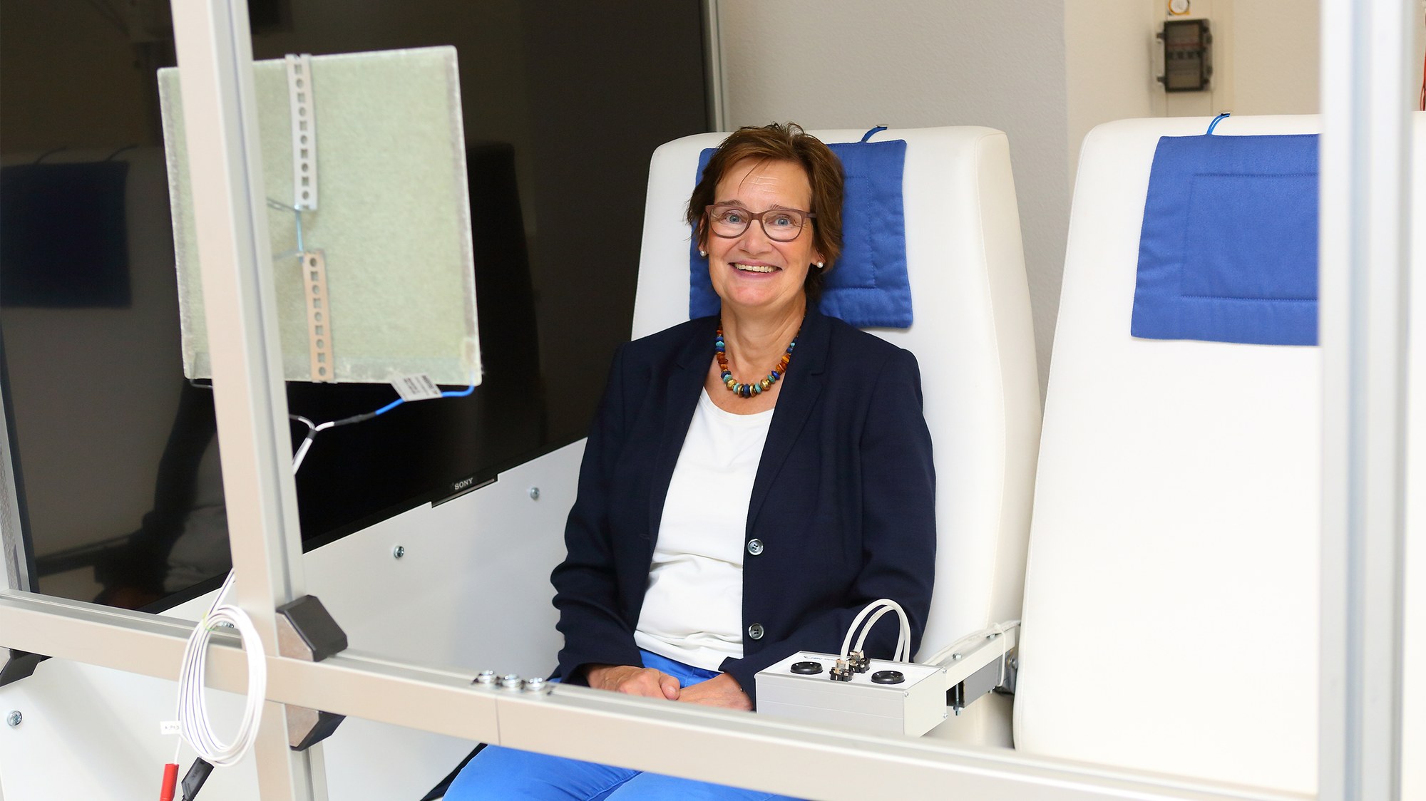 Im Institut für Fahrzeugkonzepte besichtigte MdB Sybille Benning einen Ausschnitt des Fahrgastraums des Next Generations Trains (NGT)